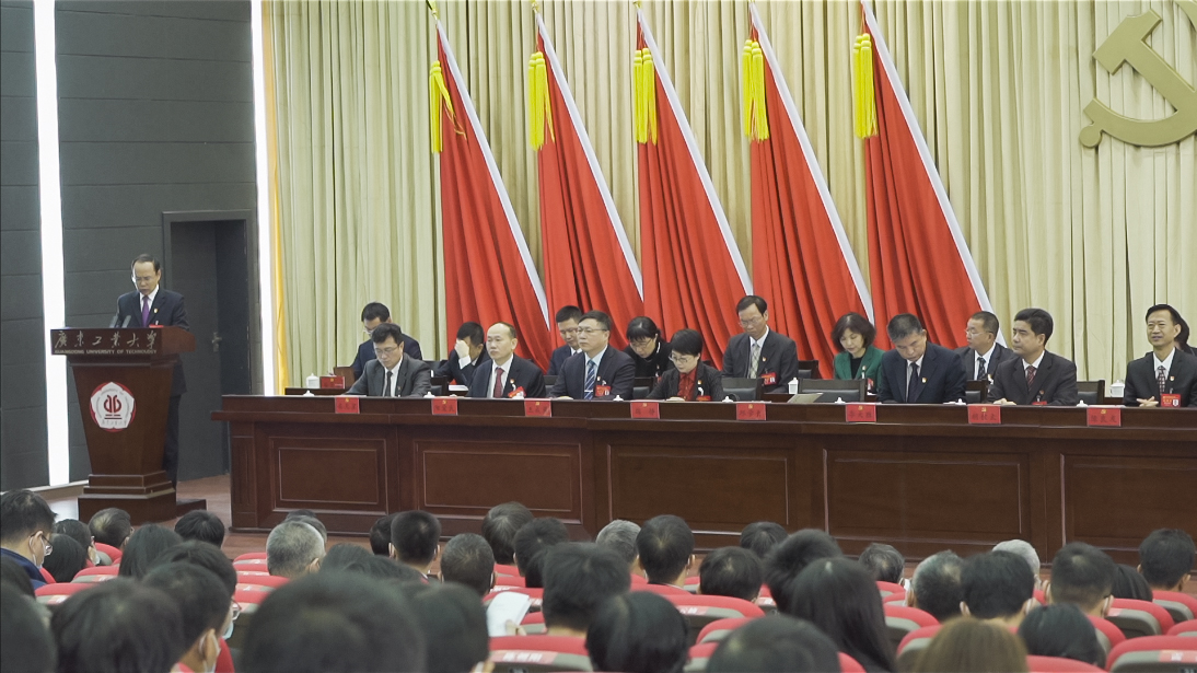 大会的主题是:高举中国特色社会主义伟大旗帜,以习近平新时代中国特色社会主义思想为指导,深入贯彻落实党的十九大和十九届二中、三中、四中、五中全会精神以及全国教育大会精神,落实立德树人根本任务,抢抓粤港澳大湾区建设重大历史机遇,深化改革、创新发展,凝心聚力、攻坚克难,奋力开启高水平大学建设新征程。