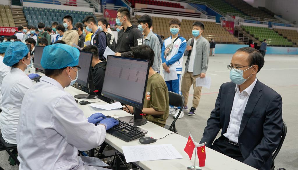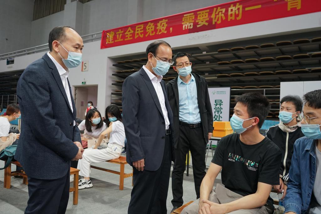 邱学青在留观区与学生进行亲切交谈,他说,防控疫情是世界各国共同面对的重大挑战,我们国家在疫情防控上做得非常好,是世界的一个典范。他叮嘱同学们按照接种相关要求,做好个人健康防护。