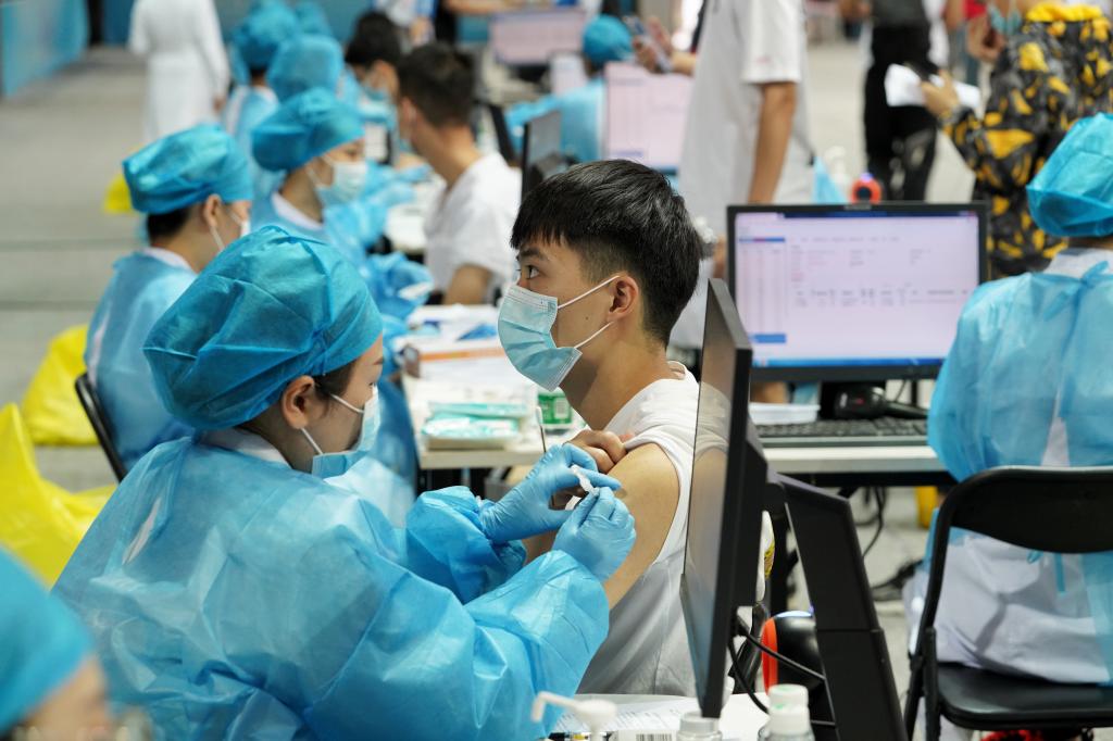 走进体育馆,新冠疫苗临时接种场地严格按照卫健部门要求划分为等候区、咨询区、开单区、接种区、观察区和异常处置区等多个功能区域。