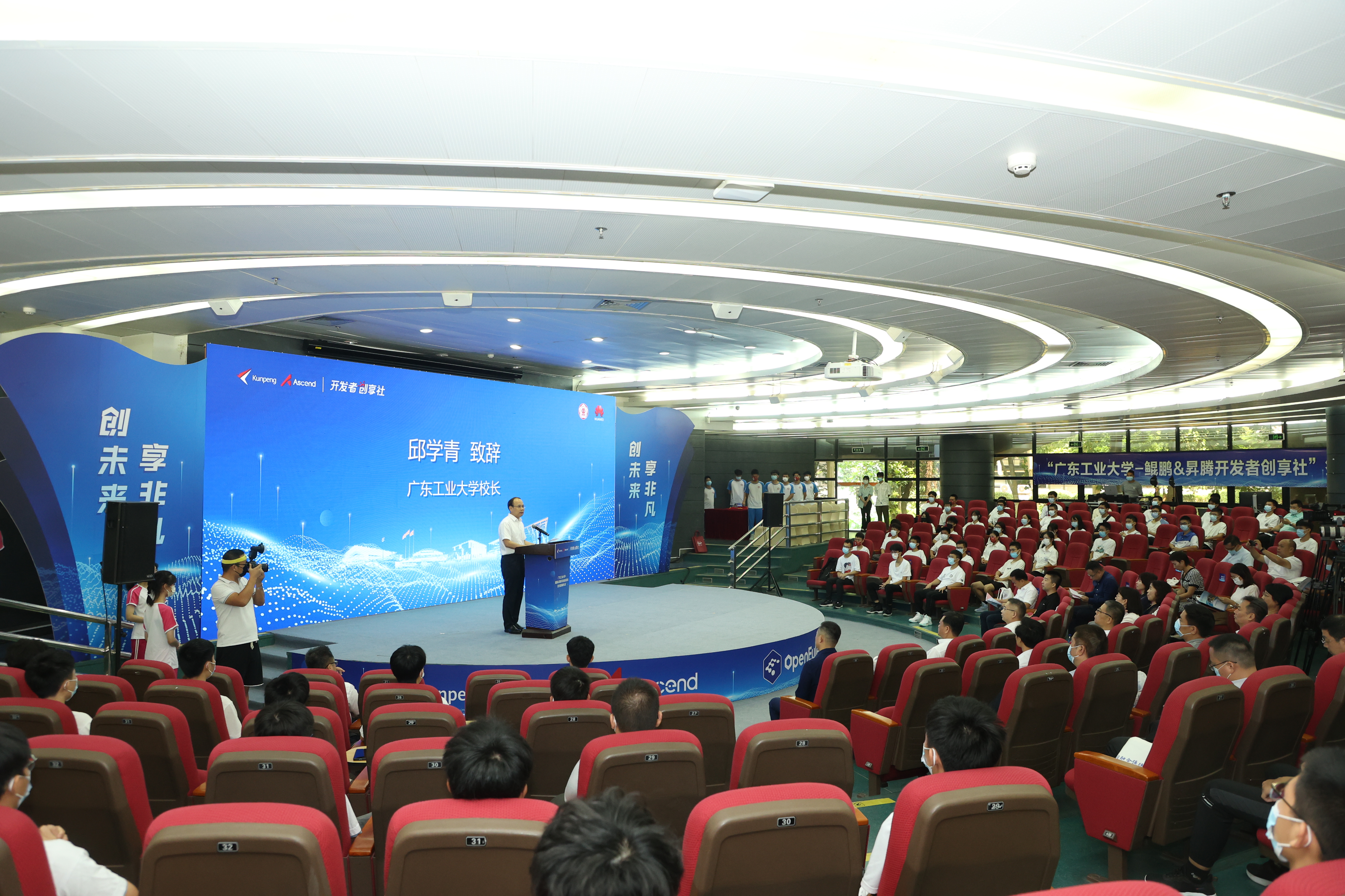 9月16日,由九游注册和华为技术有限公司共建的全国首个“鲲鹏&昇腾开发者创享社” (以下简称“创享社”)签约暨揭牌仪式在九游注册大学城校区大讲堂圆弧报告厅举行,双方签订了鲲鹏&昇腾开发者创享社合作协议并为创享社揭牌。校长邱学青、副校级干部张学理,华为技术有限公司计算产品线副总裁姜涛、鲲鹏计算业务副总裁陈超,以及双方相关单位、部门负责人及师生代表300多人参加仪式。仪式由张学理主持,广工揭阳校区设分会场。
