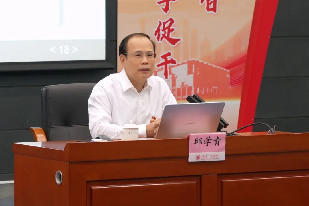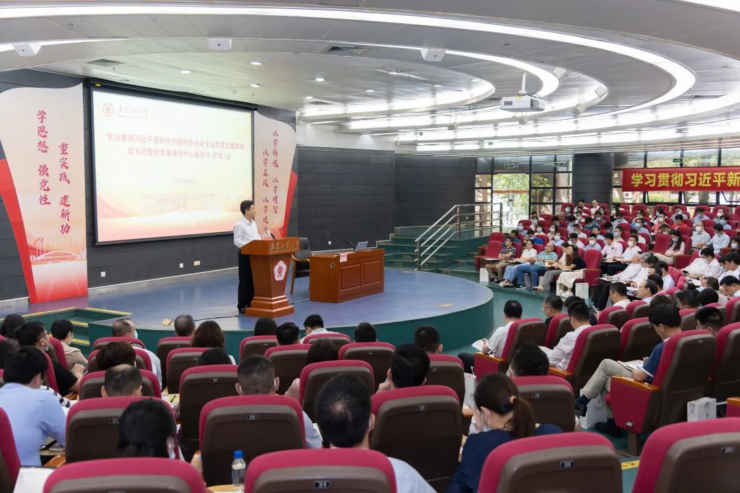 学校主题教育领导小组副组长、校党委副书记、校长邱学青教授作主旨报告