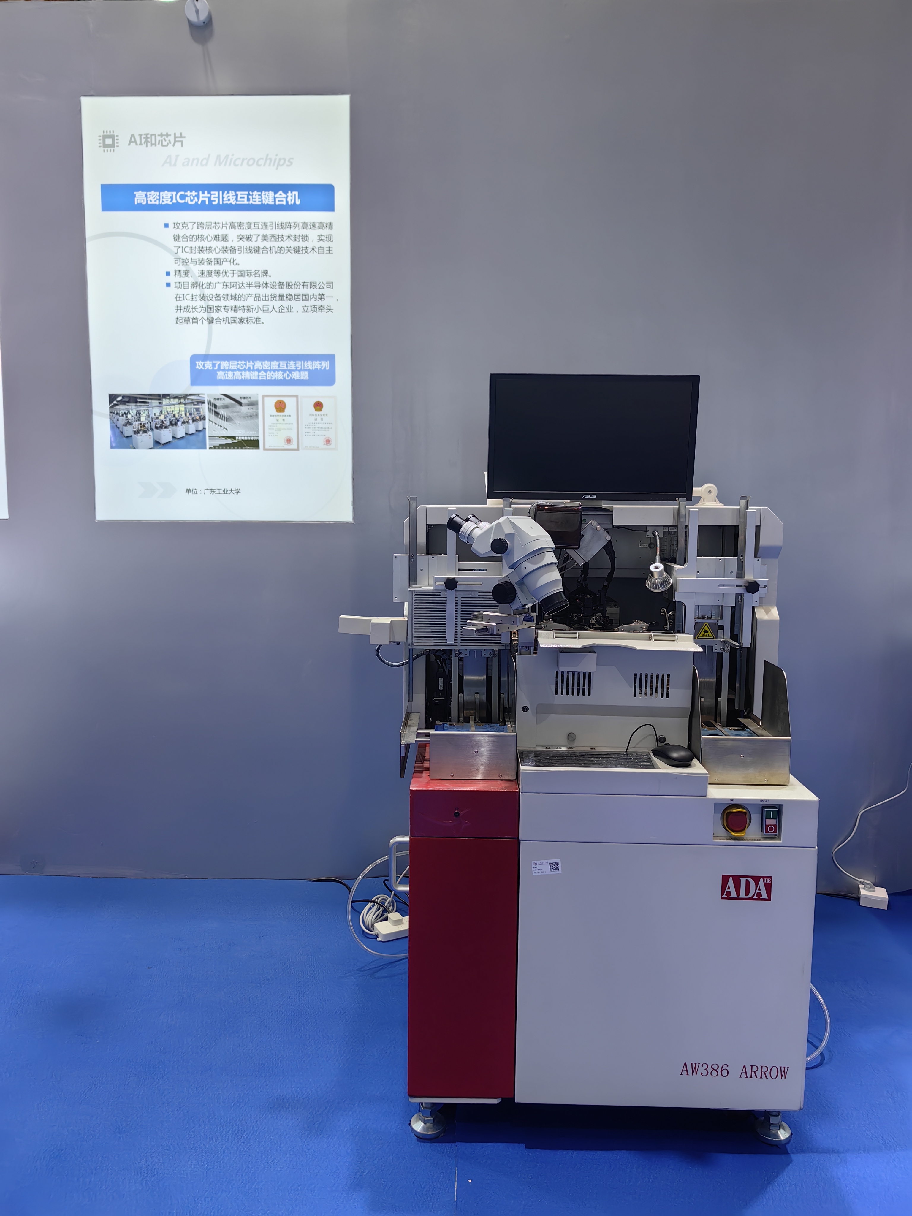 据悉,大会期间还举办产业科技融合发展成果展。广工省部共建精密电子制造技术与装备国家重点实验室展出的高密度 IC 芯片引线互连键合机在现场引来不少关注。该项目攻克了跨层芯片高密度互连引线阵列高速高精键合的核心难题,实现了 IC 封装核心装备引线键合机的关键技术自主可控与装备国产化,精度、速度等优于国际名牌,项目研制的装备/部件为我国在该技术领域的国际竞争力跃升与产业高速发展做出了突出贡献。