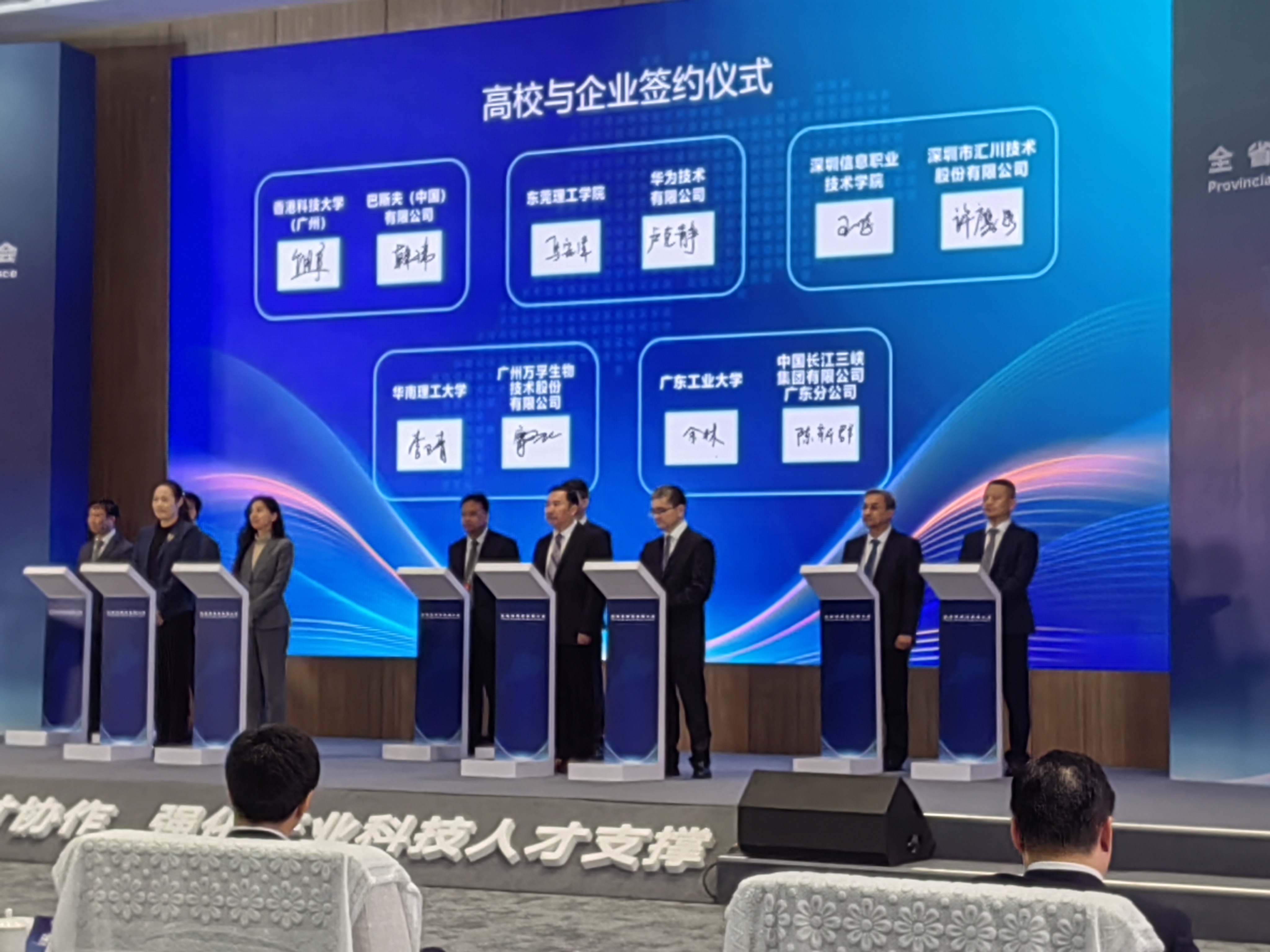 一元复始,旭日始旦。2月18日是农历新春第一个工作日,广东省委、省政府召开全省高质量发展大会,聚焦产业科技话创新、谋未来,不断夯实实体经济为本、制造业当家的根基,持续推动高质量发展。九游注册党委副书记、校长邱学青参加了全体大会与“加强粤港澳人才协作,强化产业科技人才支撑”专题分论坛,党委常委、副校长王成勇参加“加快现代化产业体系建设,推动科技和产业融合发展”专题分论坛,副校长余林在“加强粤港澳人才协作,强化产业科技人才支撑”专题分论坛代表学校与中国长江三峡集团有限公司广东分公司签订校企合作协议。