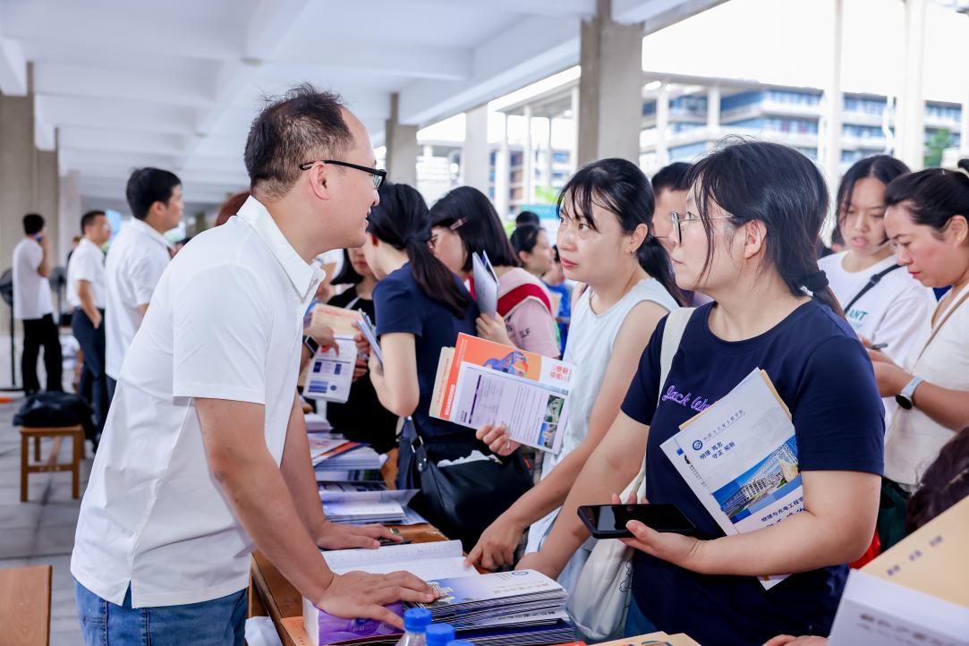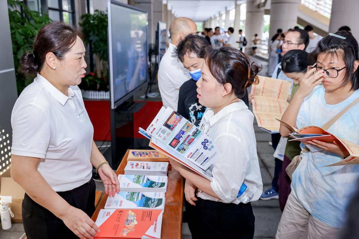 来自广州的张先生带着孩子在各展台仔细咨询,对学校的创新班兴趣浓厚。“广工的新增专业、新增创新班设置很前沿,也很契合市场需求,满足了我们家长和考生的关切,这下心里更有谱了。”来自中山的考生黄同学则表示,广工“一院一组”的专业组设置确实让自己报考方向更清晰,听过宣讲会并且咨询之后,更加确定了自己的目标。“这一趟收获满满,期待9月到广工来报到。”