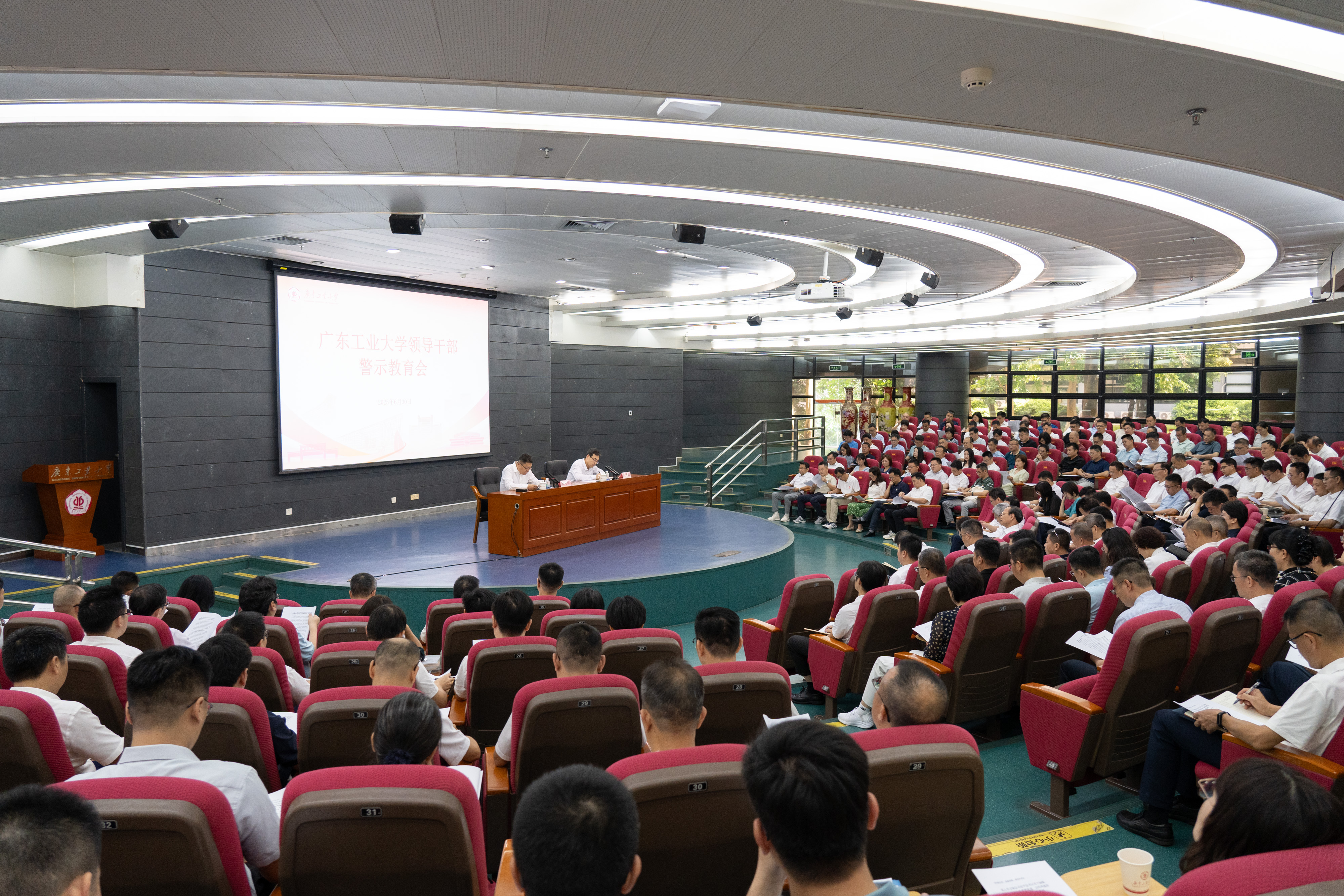 根据深入贯彻中央八项规定精神学习教育工作安排,6月30日上午,学校召开全校领导干部警示教育会暨党委理论学习中心组(扩大)学习会。校党委书记白建刚主持并讲授专题党课,党委副书记、校长邱学青作总结讲话,党委常委、纪委书记、广东省监委驻九游注册监察专员庞建国作警示教育辅导报告。全体校领导、校党委理论学习中心组成员、中层领导干部参加会议。