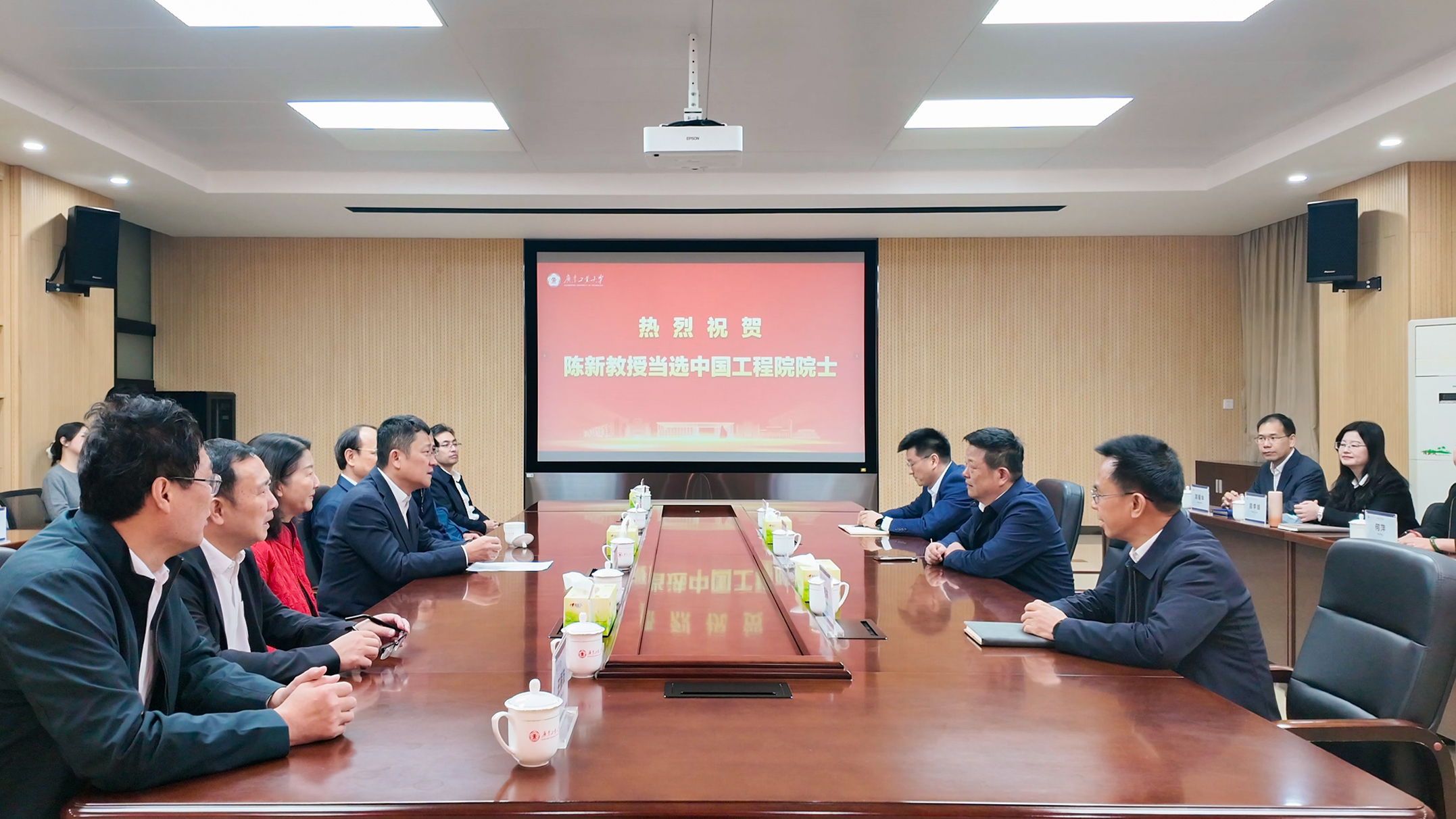 全体在家校领导也纷纷向陈新院士表示衷心祝贺,认为院士的当选不仅是个人的荣光,更是广工全体师生员工、校友的共同荣光,振奋了广工人的志气、底气和士气。全校上下要向陈新院士学习严谨治学、敢为人先的科学家精神,心有大我、至诚报国的教育家精神,为学校建设高水平创新型大学接续奋斗。