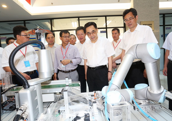 本网讯7月13日,省长朱小丹率队检查河源市粤东西北振兴发展推进情况,期间考察了河源广工大协同创新研究院。市委书记何忠友、我校副校长陈卓武一同参加检查活动。
