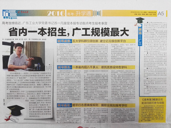 苏一凡表示,作为在全省一本招生规模最大的高校,广工近几年每年都招收了9000名以上新生。“随着高水平大学建设的推进,今后广工将适度控制本科招生规模,扩大研究生招生数量”。