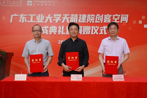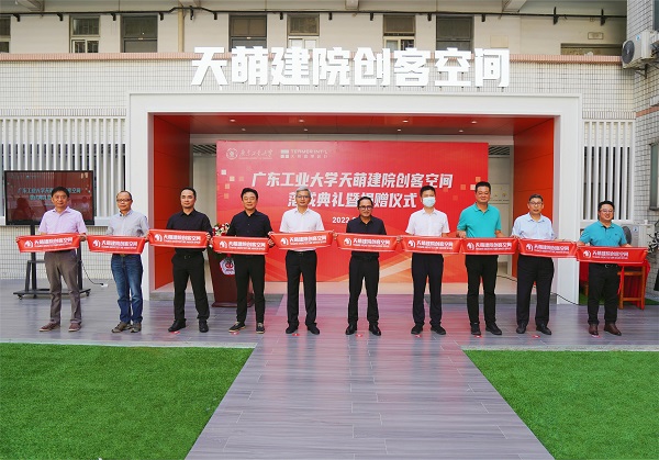 9月2日上午,天萌建院创客空间落成典礼暨捐赠仪式在东风路校区举行。学校党委常委、副校长陈卓武,学校党委常委、宣传部部长张育广,后勤管理处、对外联络与校友事务办公室、创新创业学院、建筑与城市规划学院等单位负责人。广州天萌建筑设计有限公司董事长陈宏良,总裁颜家国,以及广工师生代表出席典礼。