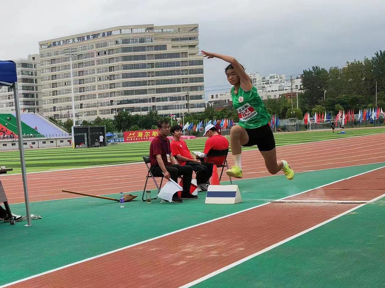 8月11日,在跳远项目中,张泽辉同学跳出7.32米的成绩,以绝对优势夺得男子甲组跳远冠军,并达标国家一级运动员;曾芷婷同学在女子甲组跳远中以5.37米的成绩摘银并达标国家二级运动员。