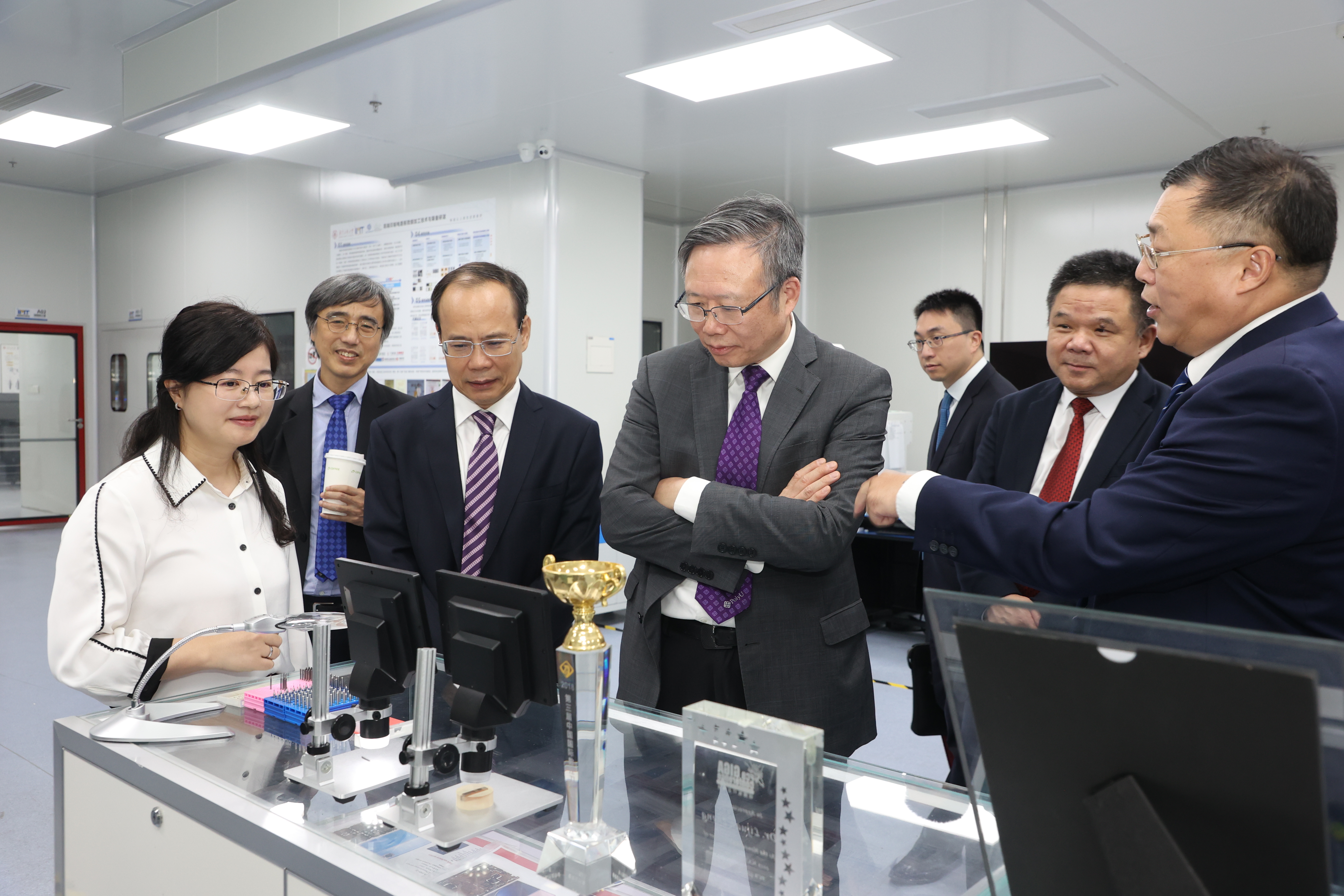 会见座谈之前,滕锦光一行在邱学青、杜承铭、王成勇、张学理等陪同下分别参观了创新创业学院、高性能工具全国重点实验室(九游注册)。王成勇对高性能工具全国重点实验室(九游注册)的相关建设及学术进展作了讲解。张学理介绍了创新创业教育的育人成果及粤港澳合作情况。滕锦光还与相关师生进行亲切交谈,了解学校创新创业教育情况及前沿技术成果。