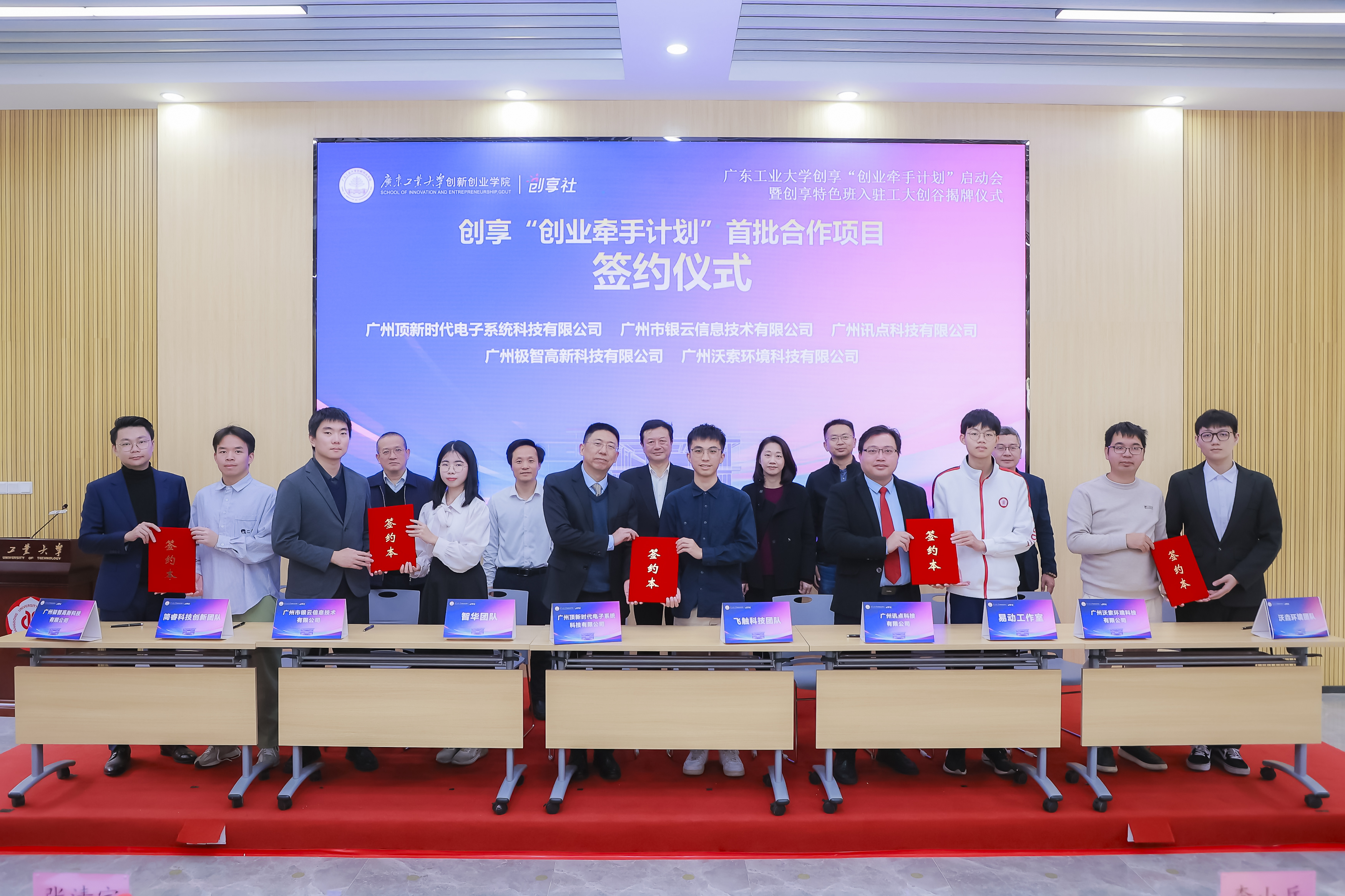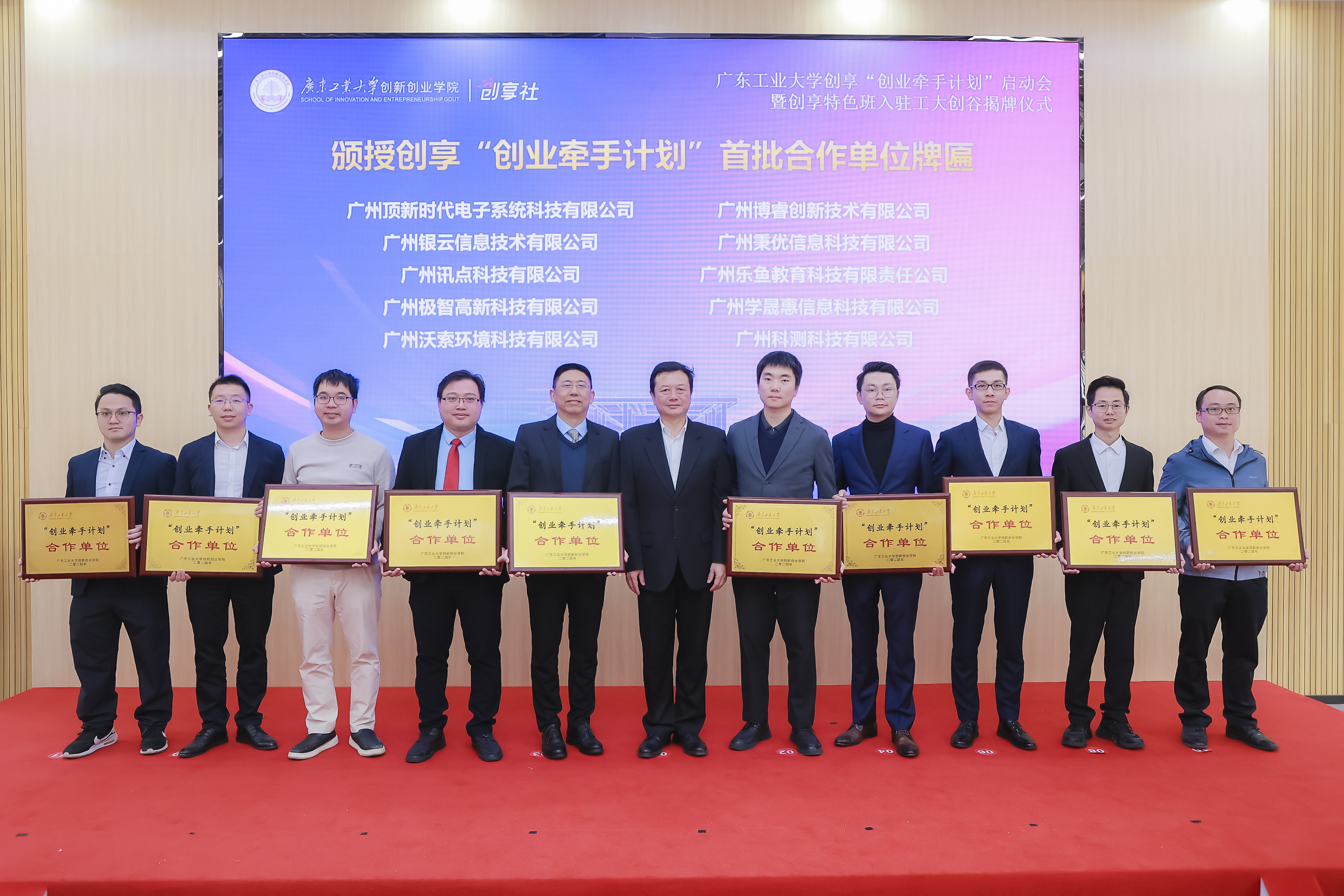 仪式上,播放了创享“创业牵手计划”及创享特色班筹备回顾短片,举行了创享“创业牵手计划”种子基金成立仪式、创享“创业牵手计划”首批合作项目签约仪式、创享特色班入驻工大创谷揭牌仪式,并为创享“创业牵手计划”首批合作单位颁发纪念牌匾。