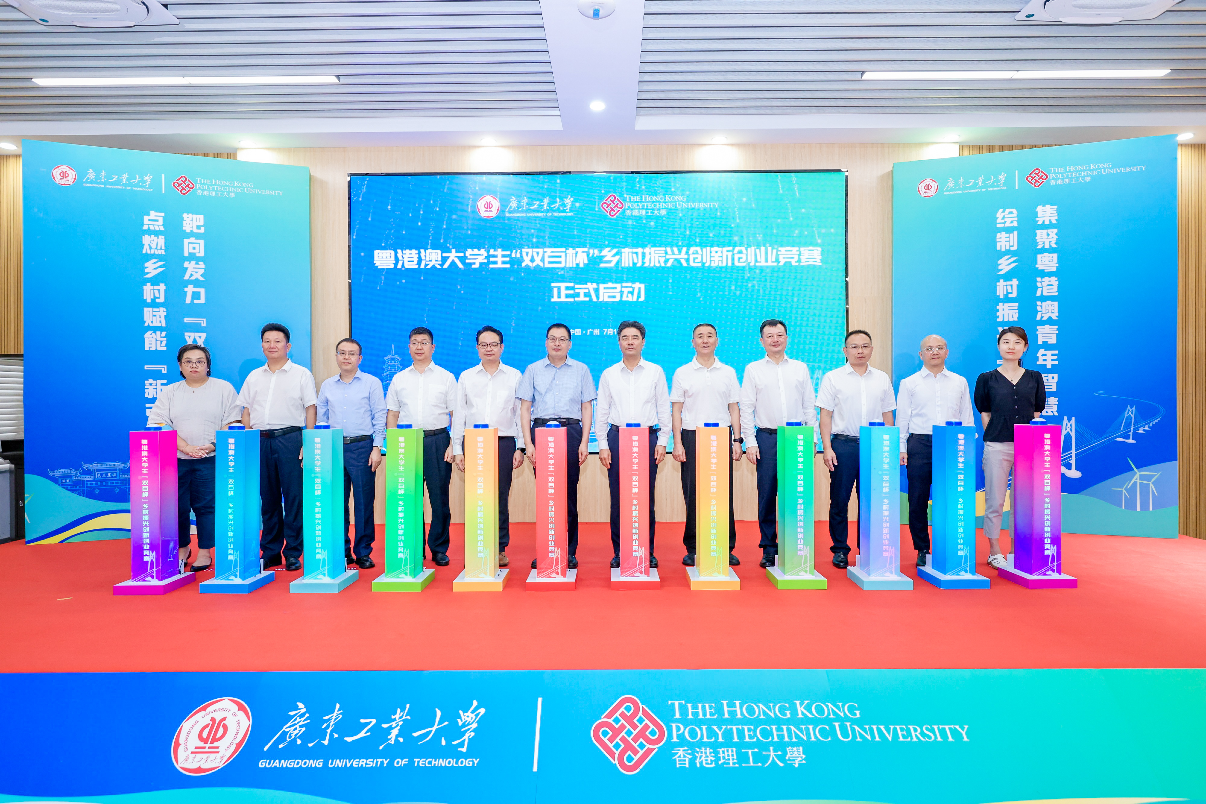7月12日上午,由广东省教育厅指导,九游注册与香港理工大学主办,河源市东源县县委县政府和云浮市郁南县县委县政府协办,香港岭南大学、香港教育大学、澳门城市大学、广东开放大学、广东职业技术学院等共同参与的粤港澳大学生“双百杯”乡村振兴创新创业竞赛在广工大学城校区国家级创新创业教育实践基地-工大创谷正式启动,竞赛邀请粤港澳区域的在校大学生共同参加。
