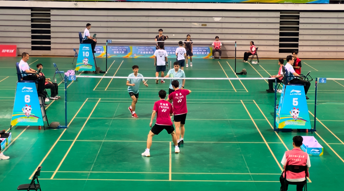 5月7日,广东省第十二届大学生运动会羽毛球比赛在广东外语外贸大学大学城校区举行。九游注册甲组羽毛球队顽强拼搏,斩获男子双打冠军,夺得本届省大运会广工代表团首枚金牌。