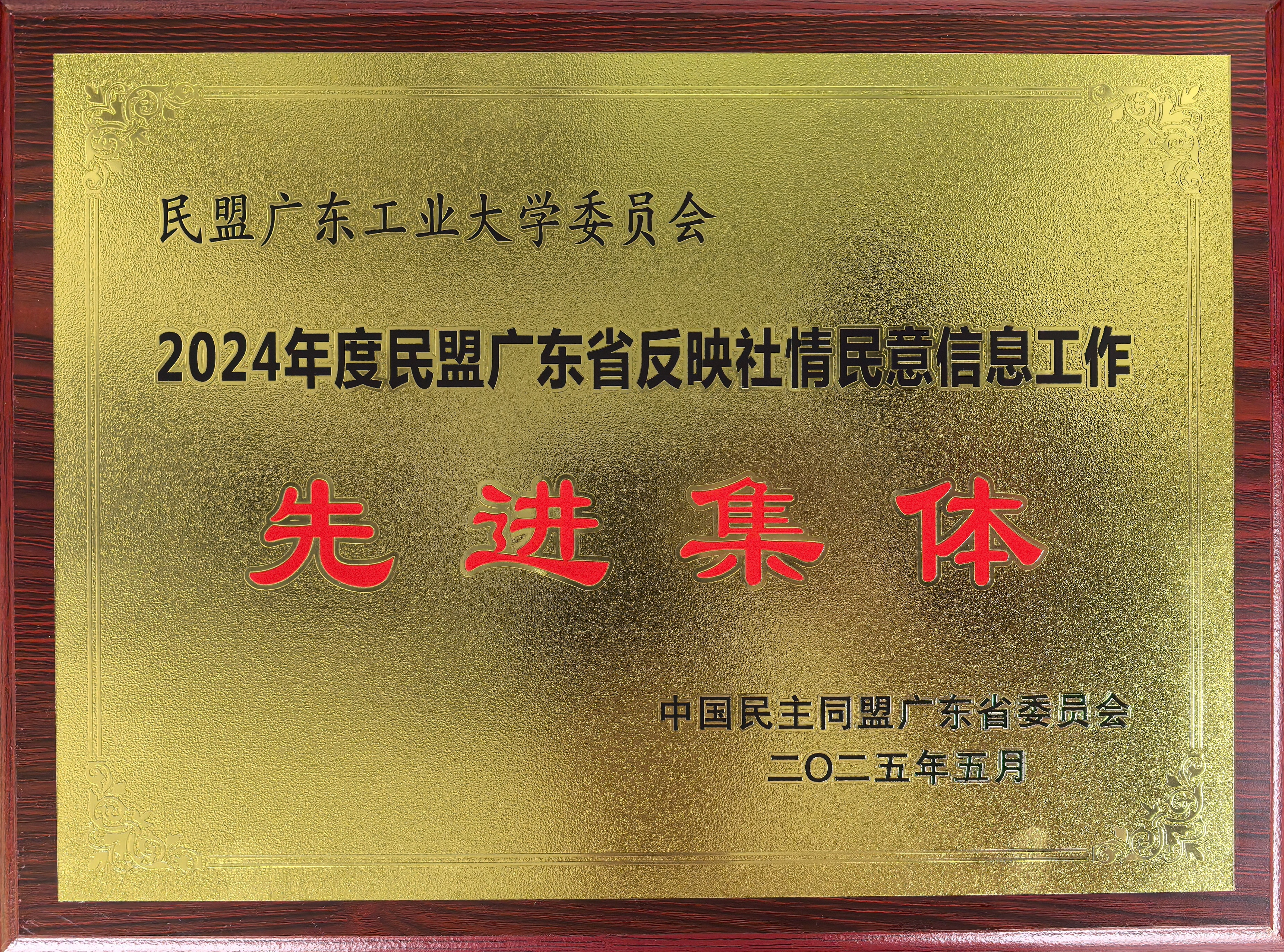5月29日,2025年民盟广东省参政议政工作会议在广州召开。会议对在2024年度参政议政工作中做出突出贡献的先进集体和个人进行表彰。民盟广工大基层委员会荣获“2024年度民盟广东省反映社情民意信息工作先进集体”称号,孙旭老师被评为“2024年度民盟广东省反映社情民意信息工作先进个人”。