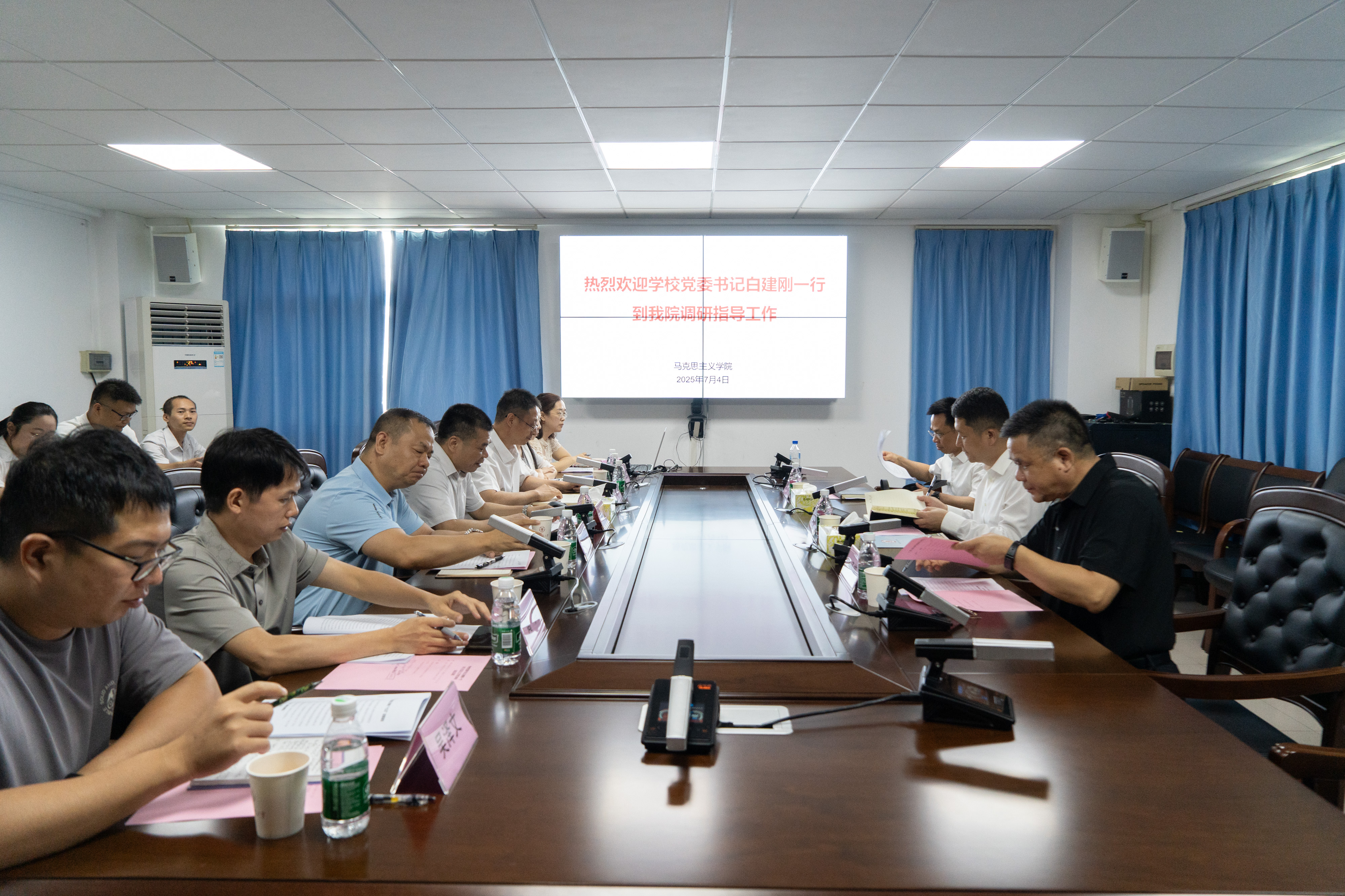 在马克思主义学院座谈会上,白建刚听取学院领导班子工作汇报,充分肯定马克思主义学院在教学科研方面取得的成绩,并对马克思主义学院建设发展提出三点希望:一要持续推进思政课教学改革创新,开好讲好“习近平新时代中国特色社会主义思想概论”,推进党的创新理论进教材、进课堂、进头脑;二要加强马克思主义理论学科建设,凝练学科方向,汇聚研究队伍,突出学科特色,推动马克思主义理论一级硕士点内涵式发展;三要加强思政课教师队伍建设,站稳“在马言马,信马传马”立场,传承弘扬教育家精神,加强教师队伍培养培训,着力提升思政课教师业务能力与育人水平。