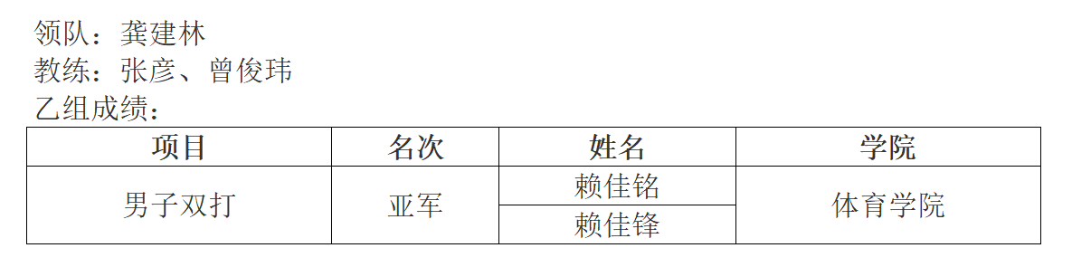经过7天的激烈比拼,运动训练专业2024级学生赖佳铭、赖佳锋发挥出色,最终勇夺男子双打项目亚军。