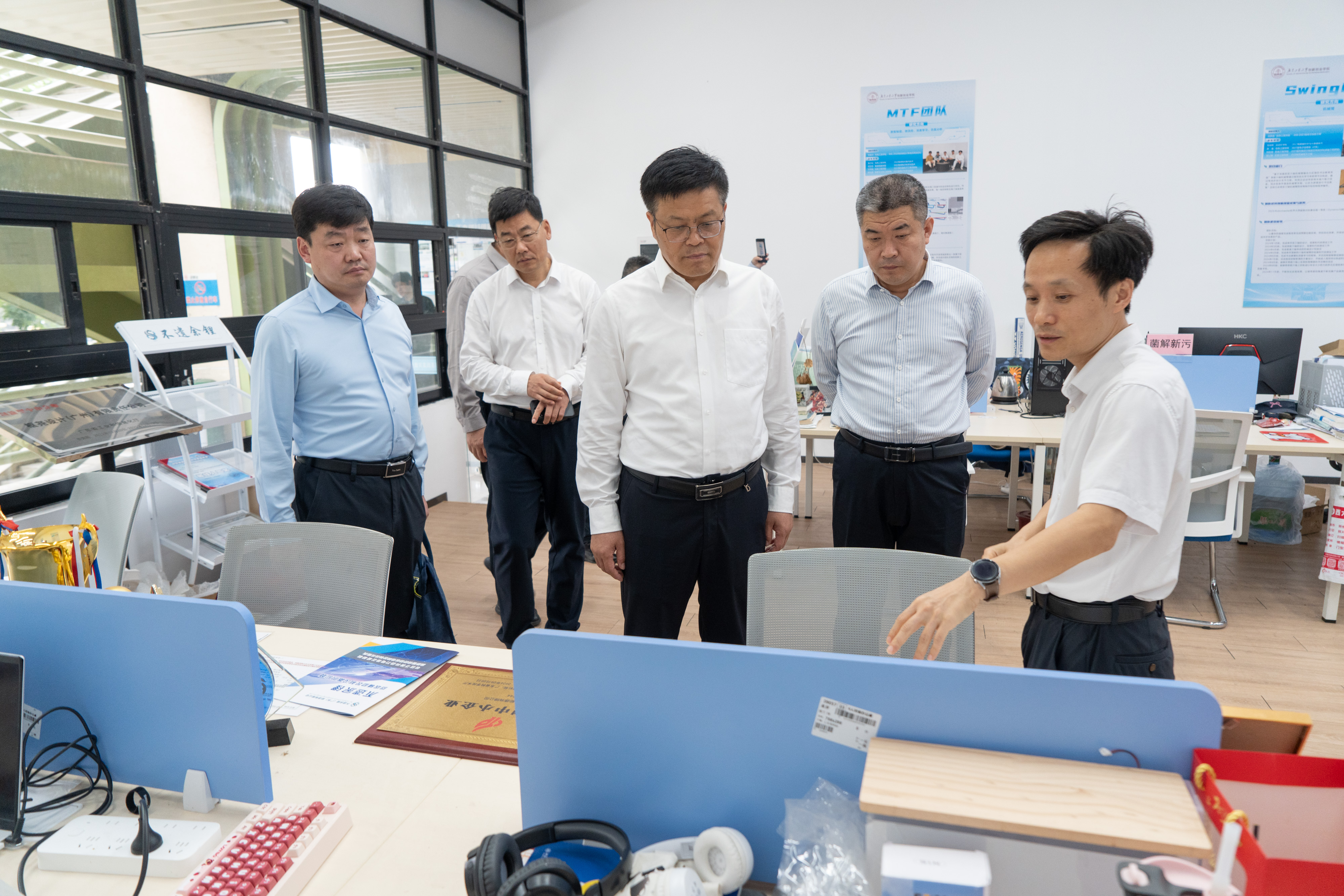 座谈会后,丛海林一行参观了创新创业学院,了解了学校在“双创”方面的育人理念、育人模式、空间建设等。