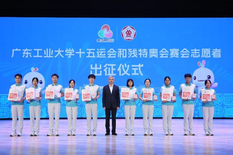 陈卓武在讲话中指出,十五运会是首次由粤港澳三地联合承办的一次大型综合性运动会,作为志愿者任务高校,广工勇于承担国家任务、保障地方所需,志愿者同学们使命光荣、责任重大。希望同学们时刻牢记“团结、勤奋、求是、创新”的校训,将广工人敢于拼搏、敢于胜利的精神气质融入到服务的每一个细节中,圆满漂亮地完成志愿服务任务。仪式上,陈卓武为学校十五运会和残特奥会赛会志愿服务队授旗,并向志愿者赠送吉祥物和保障大礼包。