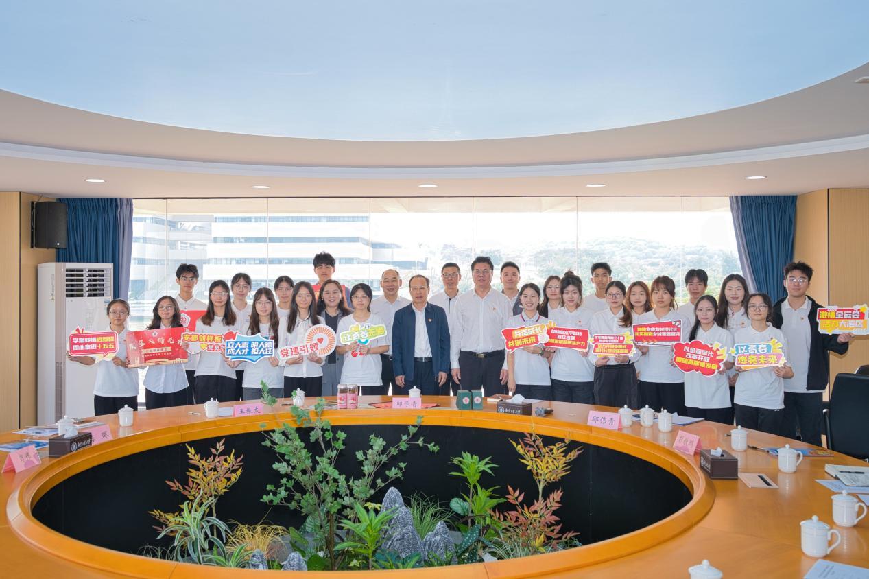 在揭阳校区学生第二党支部专题学习活动中,邱学青与学生共同学习习近平总书记视察广东和出席第十五届全国运动会开幕式重要讲话重要指示精神、党的二十届四中全会精神,并听取支部服务“百千万工程”情况汇报。他充分肯定学生党员投身社会实践、服务地方发展的成效,并对同学们提出殷切期望。一要坚定理想信念,勇担时代使命,自觉坚持党的领导,不忘初心、牢记使命,践行“我将无我,不负人民”的奉献精神,始终将人民利益放在首位,为区域发展和国家建设贡献青春力量。二要锤炼过硬本领,做到全面发展,珍惜学习时光,夯实专业基础,积极投身社会实践,在读万卷书中增长智慧,在行万里路中锤炼担当,续写“把论文写在祖国大地上”的广工故事。三要传承优良传统,矢志接续奋斗,积极总结服务“百千万工程”经验,主动接好学校服务地方发展的“接力棒”,用实干展现新时代青年的硬核担当。