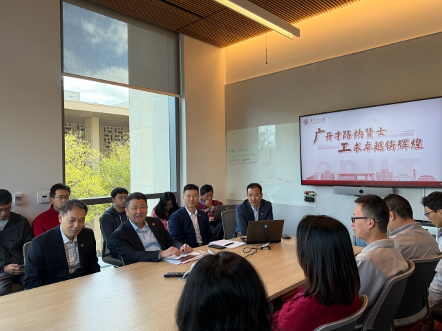 在斯坦福大学举办的人才见面会上,广工向海外学者全面推介学校人才战略,吸引来自斯坦福大学、弗吉尼亚大学等高校近50名师生参与。白建刚指出广工坚持“人才强校”战略,实施“百人计划”、“青年百人计划”,通过打造高端引才平台、创新人才评价机制、优化服务保障体系等举措致力于打造一流人才生态,并诚邀广大青年贤才加入广工,受到与会人员的积极响应与关注。