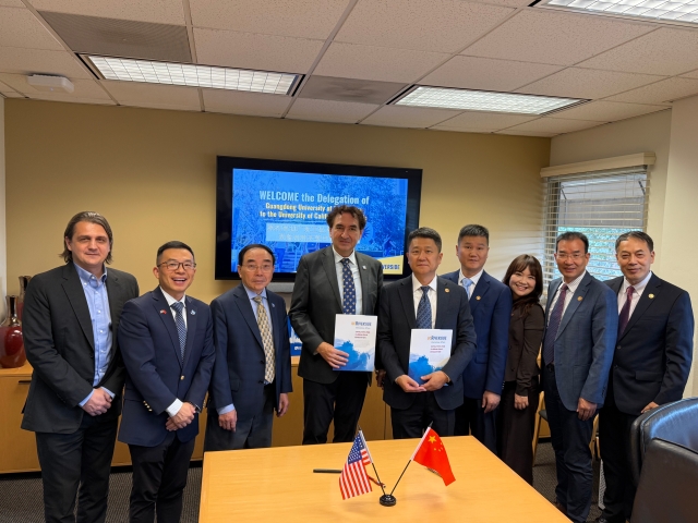 访问首站为加州大学河滨分校,校长Jack Hu表示多年前来过广工,对广工这些年的发展和取得的成绩高度肯定,对两校未来的合作充满信心。白建刚回顾了近年来两校在学生交换等方面的良好基础,就推进联合培养项目、教师互访、科研合作等达成共识,并成功签署合作协议。