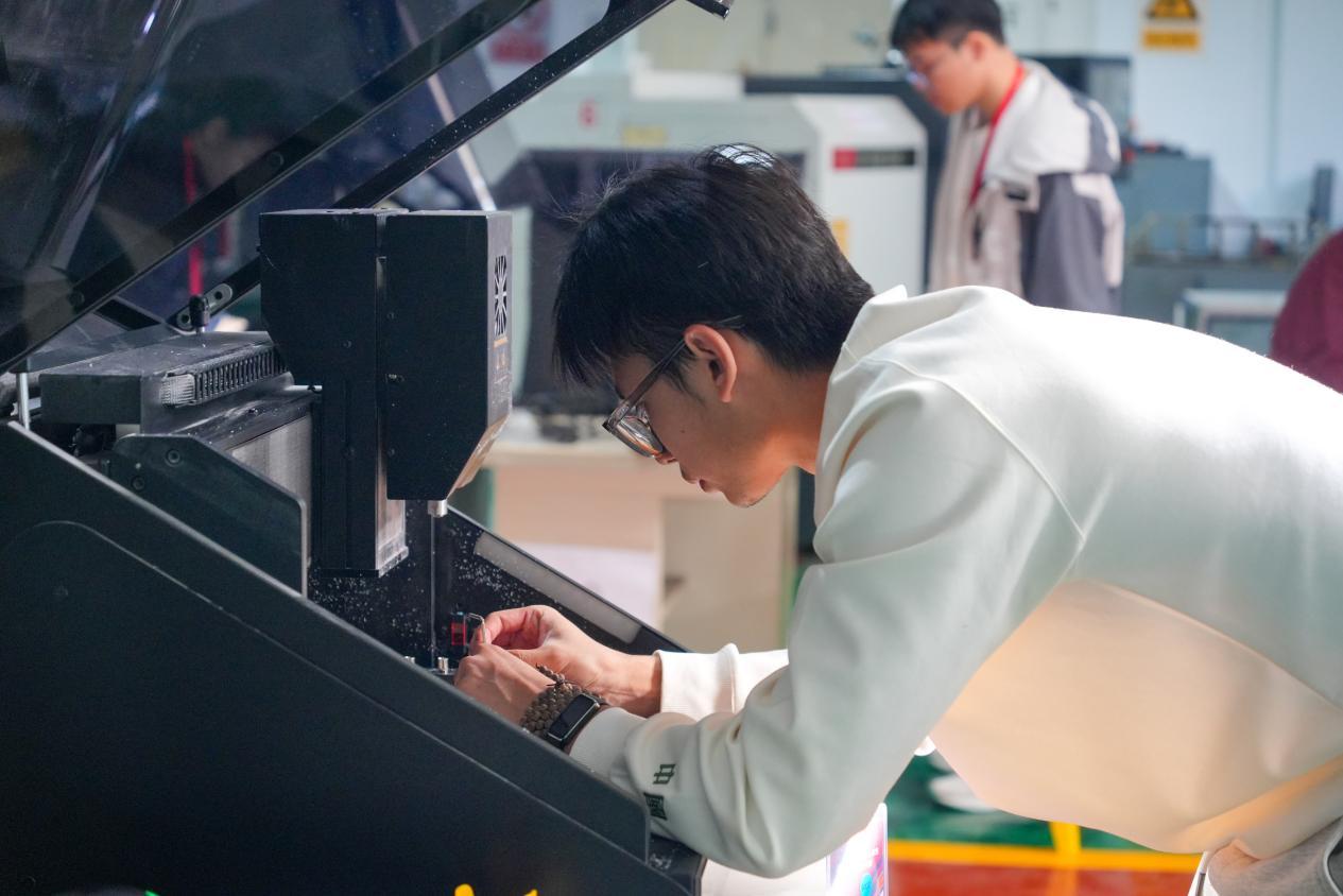 3D与数控设计与制作赛区则是科技与创意完美交融。选手们通过设计软件完成作品的创新设计,利用数控机床、3D打印机等设备完成零件的加工和制作,并将零件进行装配,从概念设计到实体成品加工制作,全流程体现了现代制造技术对创新思维的支撑。