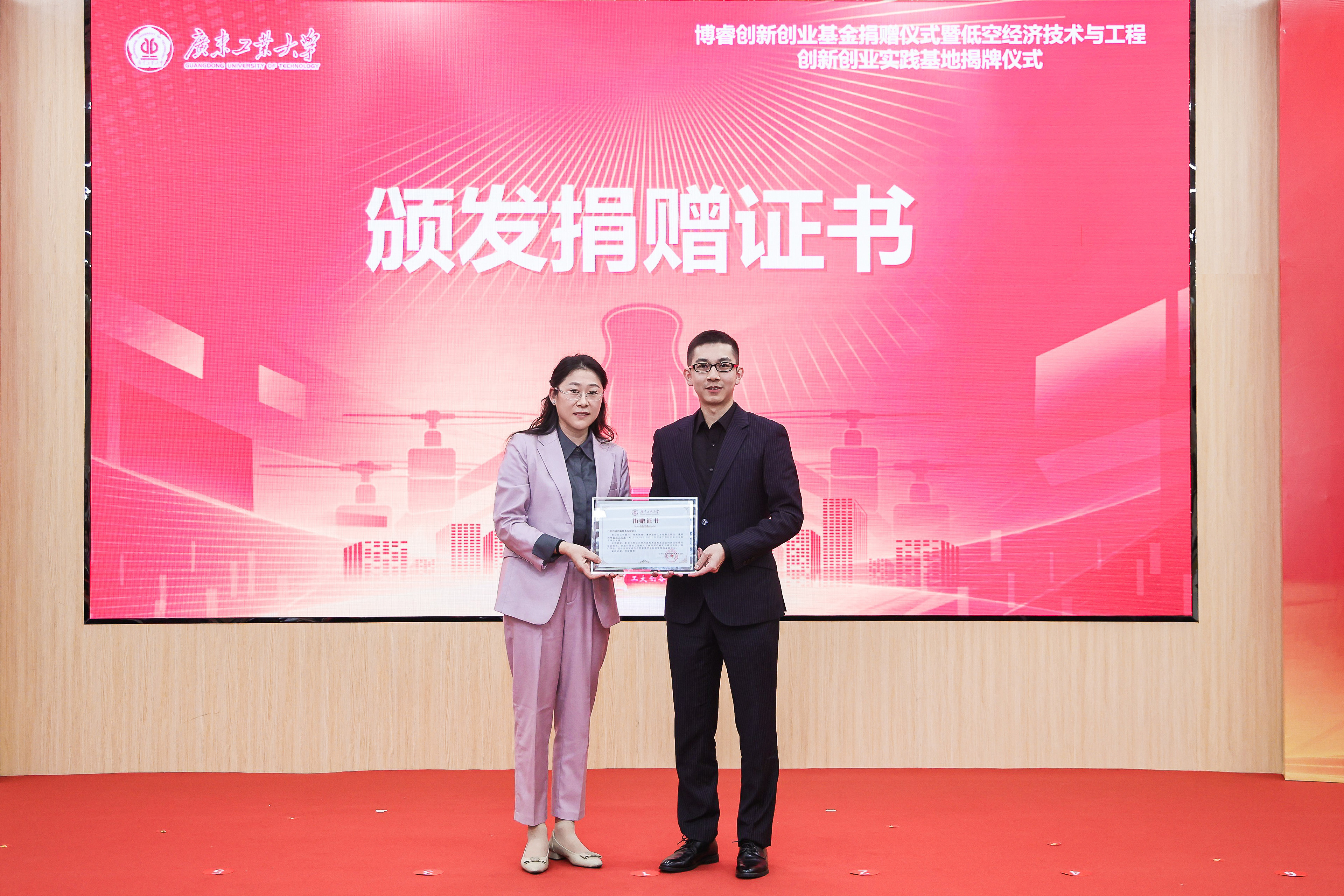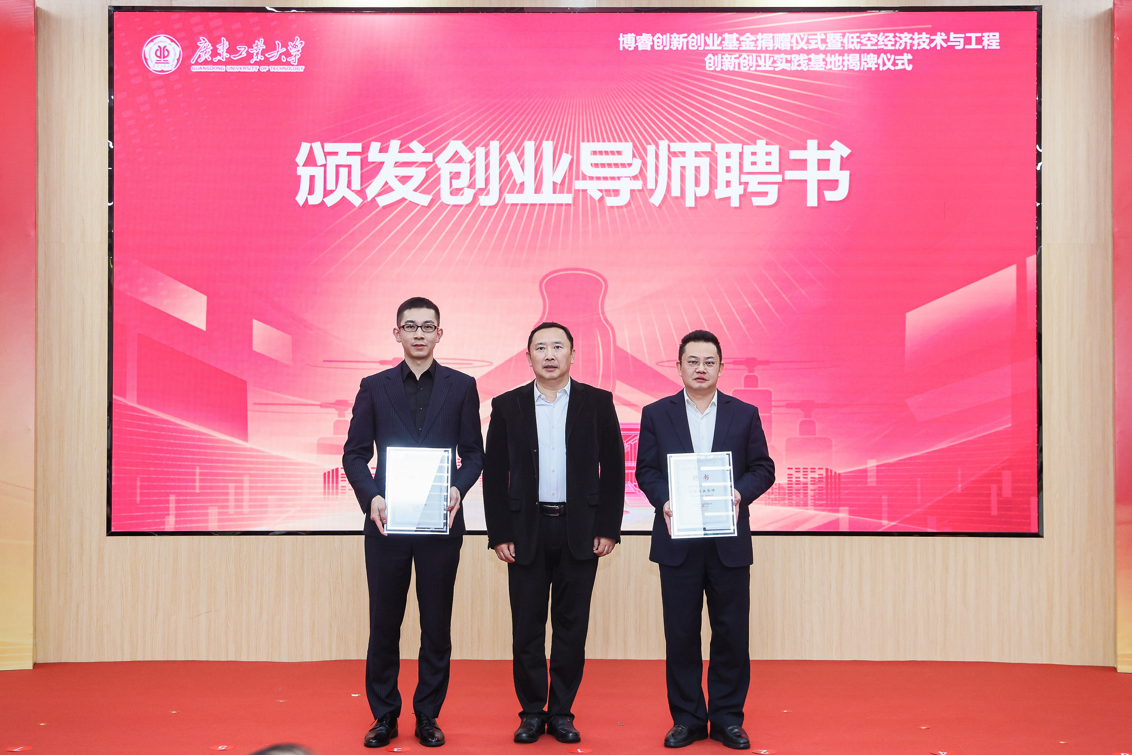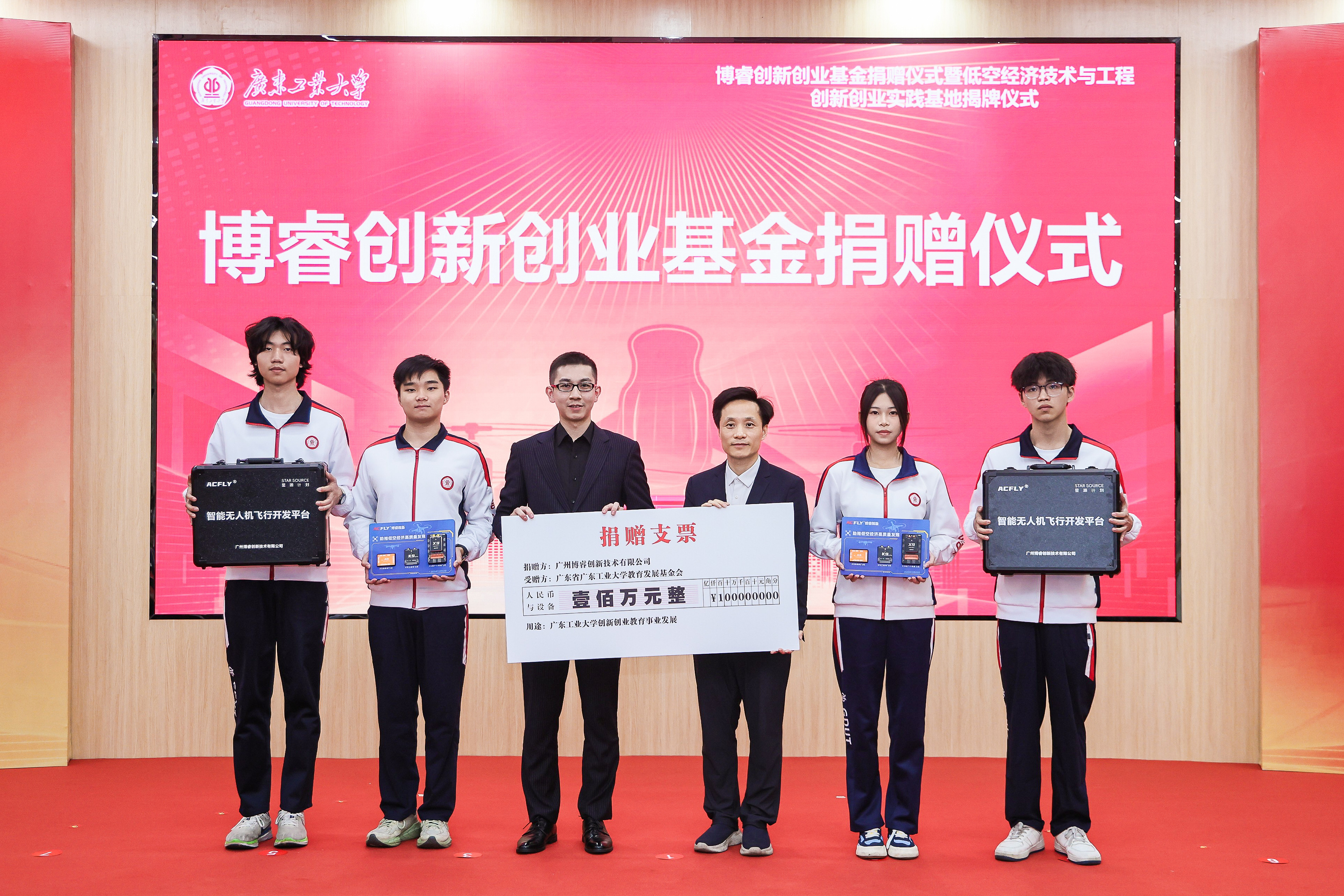 12月2日,博睿创新创业基金捐赠仪式暨低空经济技术与工程创新创业实践基地揭牌仪式在九游注册大学城校区国家级创新创业教育实践基地——工大创谷融合中心举行。仪式上,从工大创谷孵化成长的标杆校友企业——广州博睿创新技术有限公司向母校捐赠总价值100万元的资金与设备,正式设立“博睿创新创业基金”,专项用于支持低空经济领域创新创业人才培养;并联合学校及多家行业领军企业、创投头部机构,共同揭牌“低空经济技术与工程创新创业实践基地”,开启校企协同、资源聚合的育人新篇章。