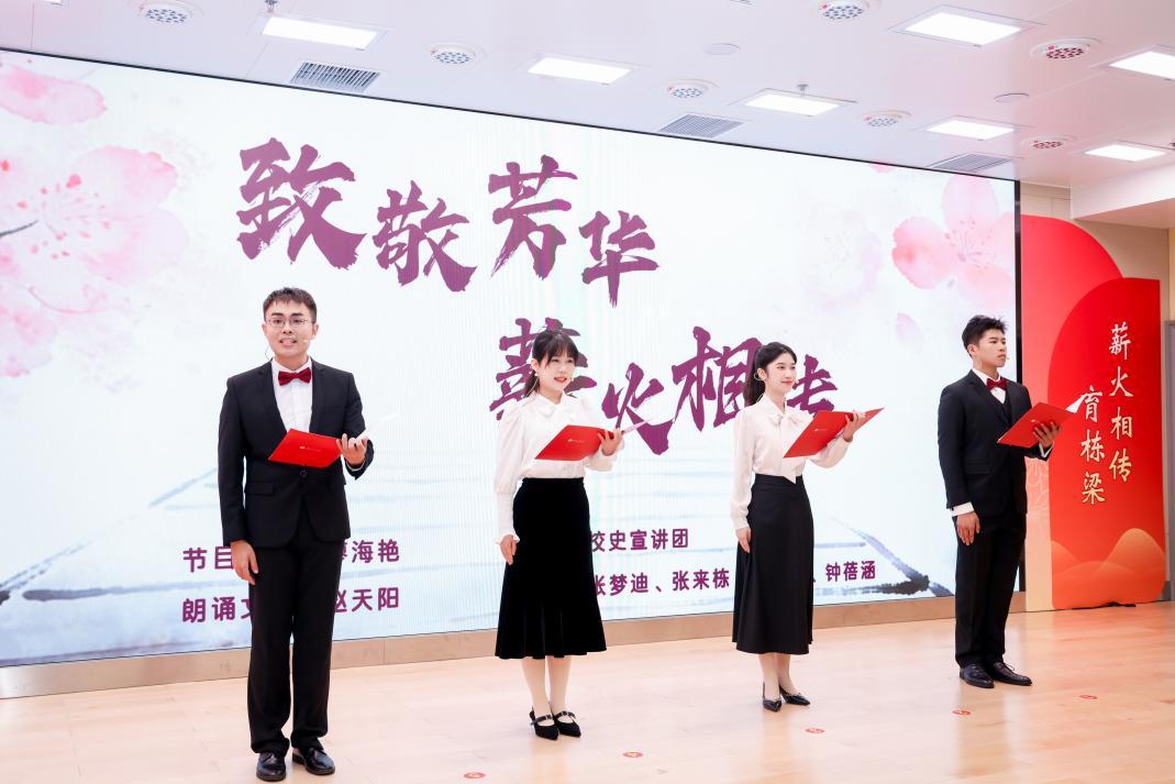 “您付出了多少,只有岁月知道;您得到了多少,自己从不计较……”青年师生共同演绎的朗诵节目《致敬芳华 薪火相传》将仪式推向高潮。师生们以真挚的情感、动人的声音,礼赞前辈们的无私奉献,诉说后辈的敬仰之情。“薪火相传”的铿锵誓言,既是以青春之名许下来自后辈们的郑重承诺,也象征着广工教育精神的光荣传承。