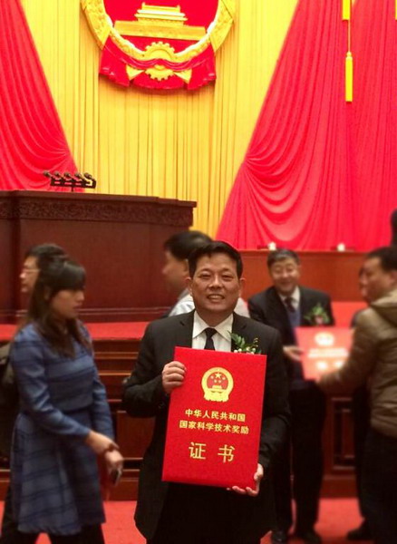 本网讯 1月9日, 2014年度国家科学技术奖励大会在北京人民大会堂隆重举行。党和国家领导人习近平、李克强、刘云山、张高丽等出席大会,为获奖代表颁奖并亲切接见。