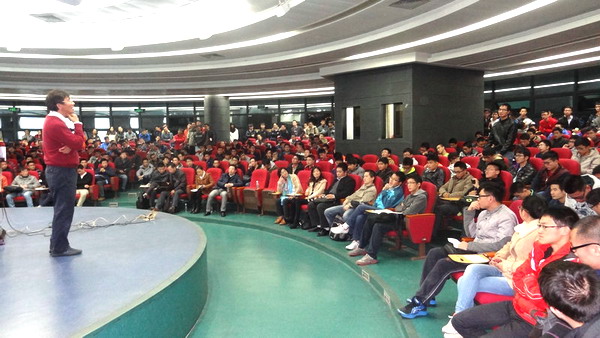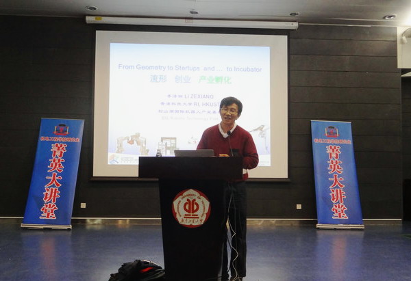 本网讯 12月17日,香港科技大学、主要从事机器人领域研究的李泽湘教授应邀做客机电工程学院菁英大讲堂主讲《流形、创业、产业孵化—中国机器人产业的机遇与挑战》。他结合自己的工作经历、研究内容,分析了当前机器人在国内外研究现状,以及机器人在应用领域的发展所带来的创业机遇,并分享了自己与学生创业的经历,介绍了大疆创新以创新为目的研究制造产品,李群自动化研制在3c行业的工业机器人,介绍了松山湖国际机器人产业基地。在现场互动环节,他对大家提出的关于如何用科研成果实现创业,如何抓住当前发展机遇等问题作了耐心解答,并鼓励同学们树立远大目标,勤奋努力,努力实现创业梦想。机电工程学院研究生、本科生近230多人聆听了讲座。