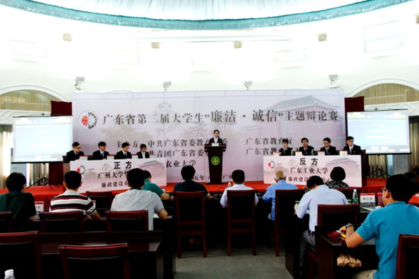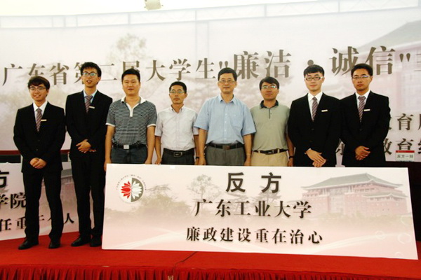本网讯6月7日,省第二届大学生“廉洁·诚信”主题辩论赛复赛在华南农业大学举行。我校作为八支晋级队伍之一参赛,顺利挺进省赛四强。校党委副书记、纪委书记汤耀平,校纪委办、团委等部门相关负责人,辩论赛指导老师亲临赛场,指导比赛。