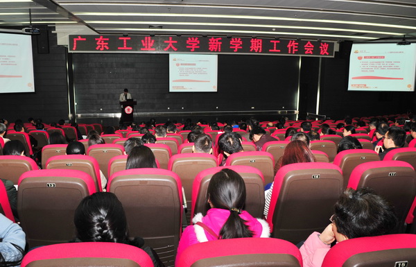 陈新回顾了2015年的工作,部署了下一阶段的工作。他说,在过去的一年,我校进入广东省高水平大学重点建设高校行列,成功承办第十四届“挑战杯”并取得了良好成绩,以学校章程发布为标志开展了全面深化改革,各项工作都取得显著成绩,学校办学的社会声誉得到大幅度提升。他结合国家“十三五规划”“五大发展理念”和重大战略背景,以及高等教育发展的机遇,谈了我校发展面临的形势,认为我校推进高水平大学建设有着非常利好的外部环境。下一阶段的工作,须紧紧围绕高水平大学建设任务,进一步厘清发展思路,以体制机制改革为支撑,整合各方创新资源,引导、组织多学科交叉融合;面向广东产业重大战略需求,汇聚高端人才、构建一流平台和团队;培育一流成果、提供一流服务;培养一流的人才,努力建设与产业对接最好、最具创造活力的高水平大学。在学科建设上,要重视学科交叉融合,重视新兴学科培育,加快制定学科大部制方案,加快建设一批高水平实验室等;在师资队伍上,要建立现代人事管理制度,注重交叉团队组建,加大骨干教师国(境)外研修支持力度等;在科研工作上,要加快知识产权服务机构与团队建设,培育重大科研成果,推进参与军民融合国家战略,继续加强协同平台基地建设等;在人才培养上,要贯彻“精英教育”要求,深化改革、彰显特色,全力打造创新创业人才;在国际合作与交流上,要加强合作、注重开拓,全面提升学校国际化水平。还对学校综合管理各方面工作提出了要求。他最后说,2016年是“十三五”规划的开局之年,也是完成高水平大学建设目标任务最关键的一年,任务繁重、使命崇高,希望全校师生用昂扬斗志和团结进取的精神书写学校的辉煌历史。