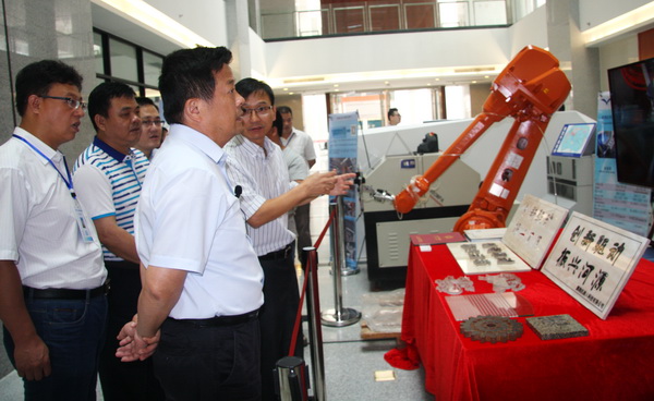 本网讯8月18-19日,校党委书记苏一凡、校长陈新到广工大河源协同创新研究院检查指导,听取研究院工作汇报,观看了成果展示厅,并深入新天彩科技公司、电商产业园、金鹏强机器人工业园考察,与相关负责人交流,要求研究院要抢抓广东实施振兴粤东西北战略机遇,立足河源产业实际需求,做强平台建设,做好科技创新和科技服务;要多渠道多方式多机制建立与企业的深度对接,并发挥学校学科优势、科技优势和人才优势,推进科技成果落地转化,优质高效地解决企业面临的技术难题。要加强管理,在社会和企业大力营造协同创新氛围,为研究院更好服务河源产业创造良好的条件。