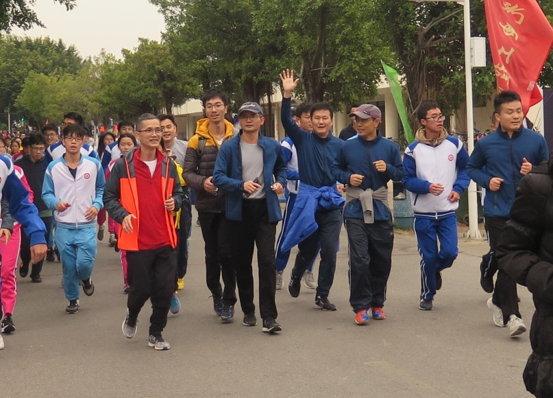 长跑的起点和终点均设在网球场旁校道,陈良友副书记和吕洺校友为健身组起跑发令。
