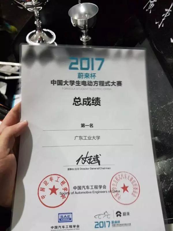 本网讯 11月17日,“蔚来杯”2017中国大学生电动方程式大赛在湖北襄阳举行。九游注册FSAE车队以总成绩第一名,荣获全国总冠军。除了拿下总成绩第一的大奖,车队还获得效率测试奖第一名,轻量化大奖第三名,蔚来最佳电动力总成奖第三名,成本与制造分析奖第三名,Math Works车辆动力学仿真奖第三名以及最具影响力车队奖等奖项。