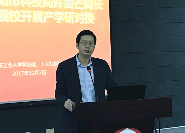 许剑芒介绍了揭阳市产业发展情况及规划方向,详细介绍了揭阳“4+5+5”产业体系,即重点发展石化、纺织服装、金属和食品医药产业等四大支柱产业;加快发展智能制造装备、电子信息、节能环保、新材料和新能源产业等五大新兴产业,以及加强玉器、制鞋、模具、玩具和电线电缆产业等五大特色产业扶持等。他表示,揭阳产业体系与广工优势学科高度契合,迫切希望与广工开展产学研深度合作,助力揭阳产业集群快速提升。