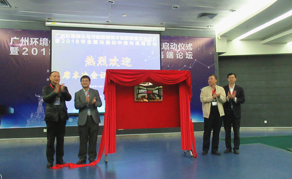 副校长陈为民、市科创委调研员黄建华、环境健康与污染控制研究院院长安太成教授、联盟依托单位广州紫科环保科技股份有限公司董事长李云飞共同为联盟揭牌。来自国内高校、科研院所和企业以及本校师生共约150余人参加本次启动仪式。启动仪式结束后,12位“国家杰青”及8位“国家优青”在内的30余位国内光催化领域中青年专家学者参加论坛。