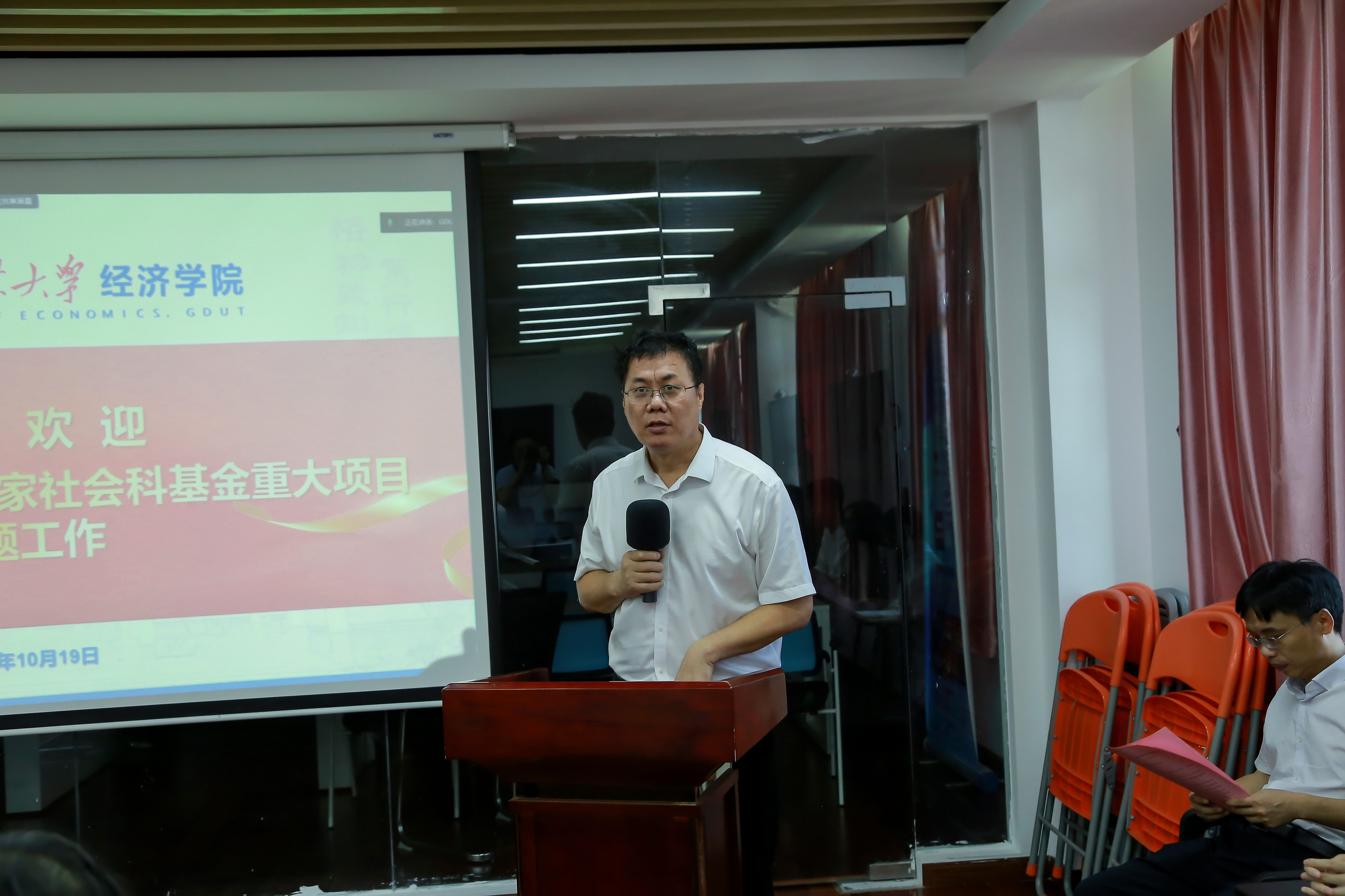 10月19日,经济学院谢卫红教授主持的国家社科基金重大项目“人工智能对制造业转型升级的影响与治理体系研究”开题报告会在龙洞校区实验楼B北502顺利举行。上海社会科学院副院长干春晖研究员,广东外语外贸大学副校长、粤港澳大湾区研究院院长申明浩教授,国家工业信息安全发展研究中心付伟研究员,学校党委常委、副校长王振友教授,原副校长张光宇教授,人文社科处副处长钟科等受邀出席报告会,经济学院党委书记林伟英,院长谢卫红教授、副院长王忠教授及课题组成员参加会议。报告会由人文社科处处长王明亮教授主持。