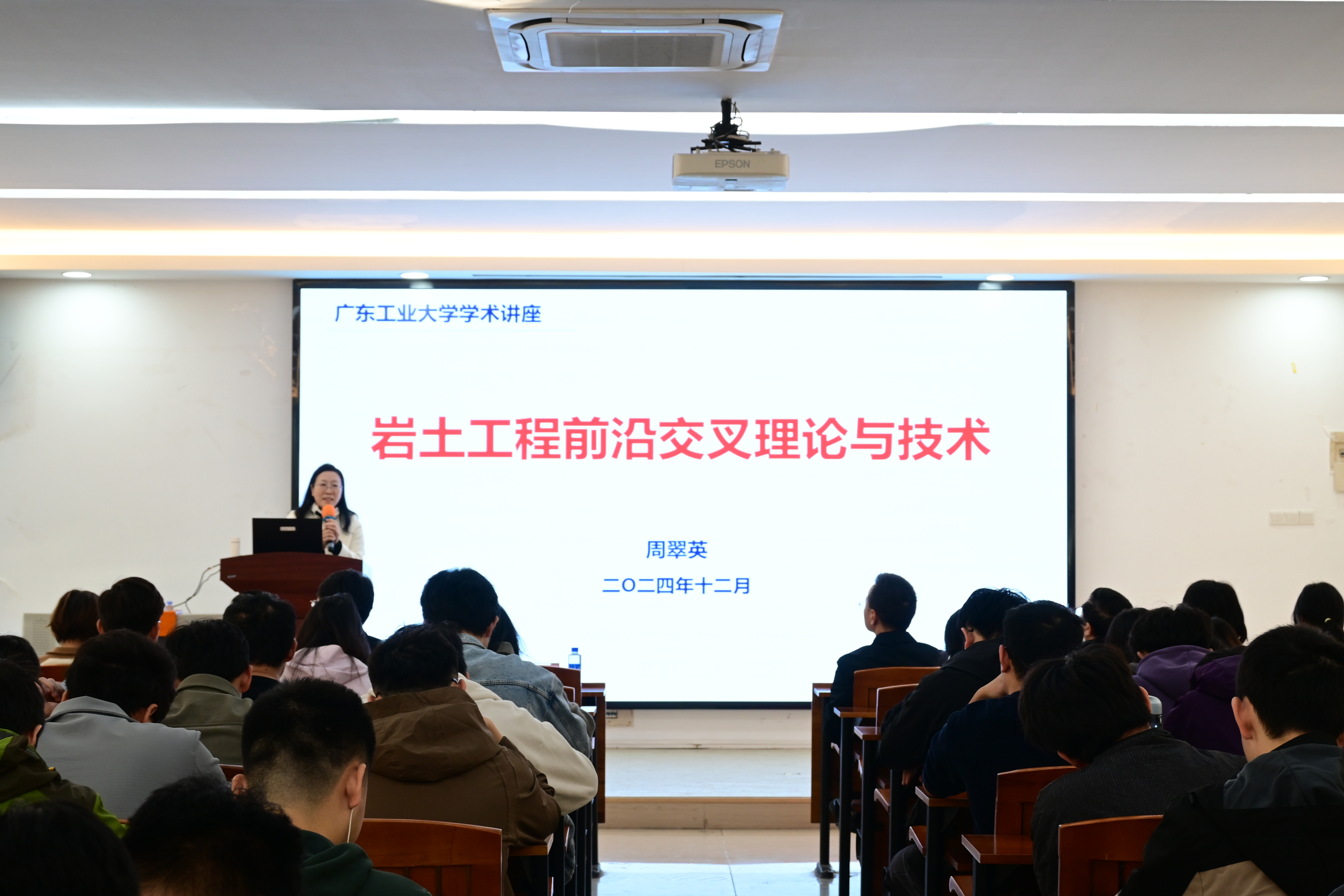 周翠英教授以“岩土工程前沿交叉理论与技术”和“红层灾变防控前沿交叉理论与技术”为主题进行了学术分享。在讲座中,她从五个核心角度——理论方法、绿色技术、调控体系、智能平台以及高精装备——系统地阐述了当前特殊岩土体灾变防控研究领域的重点方向与创新突破,特别是她所领导的研究团队近年来取得的若干突破性进展,并强调智能化技术对岩土工程相关技术发展的重要意义。