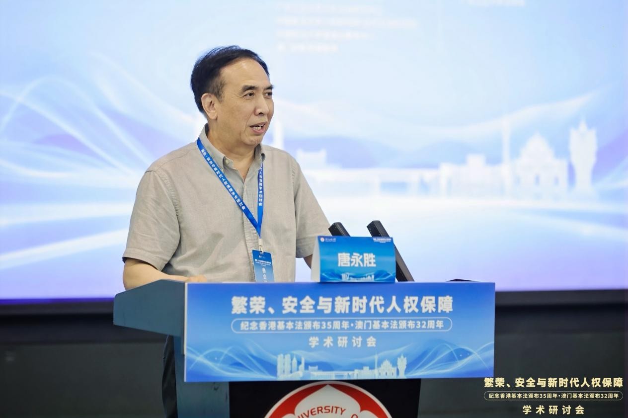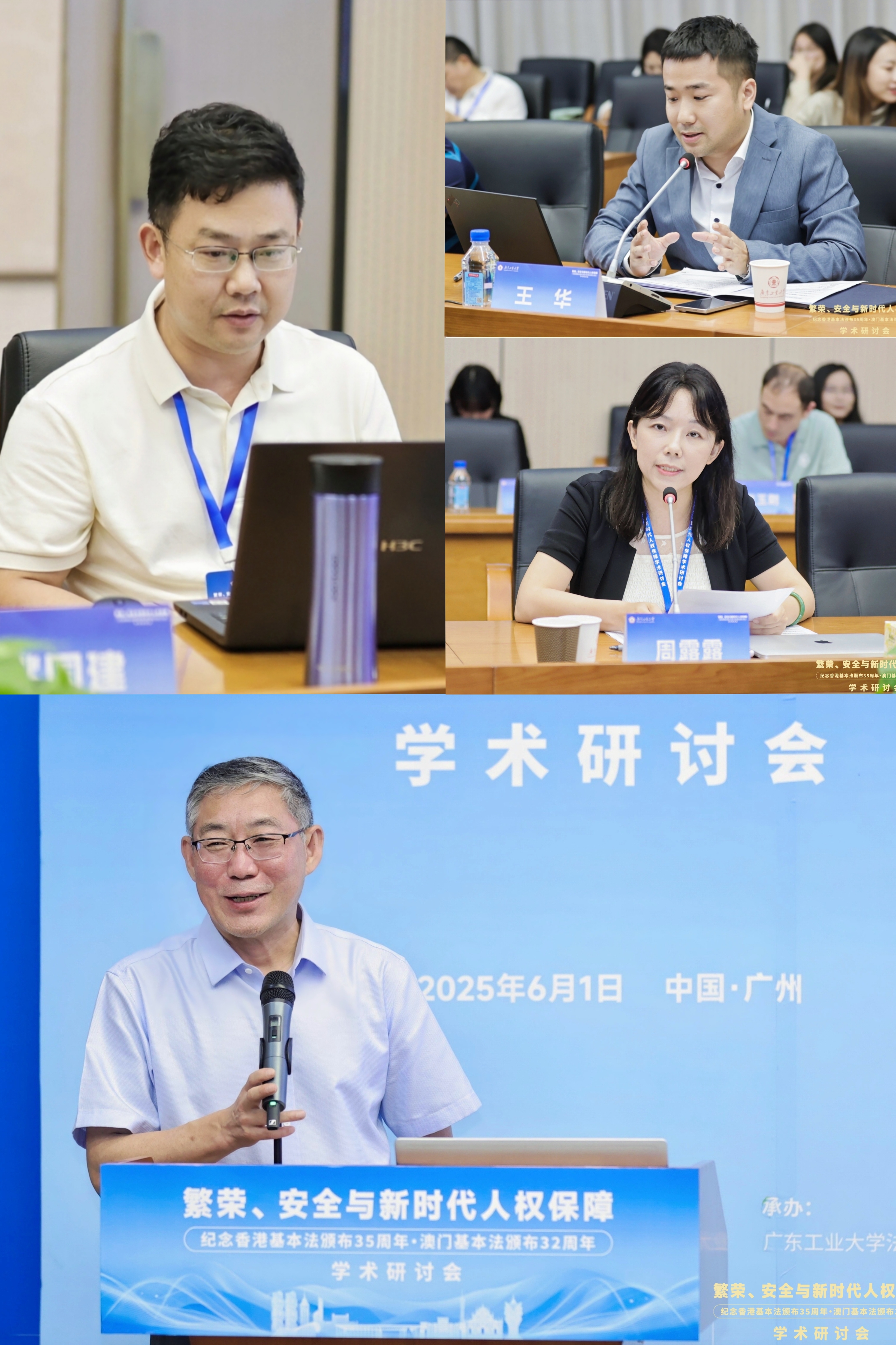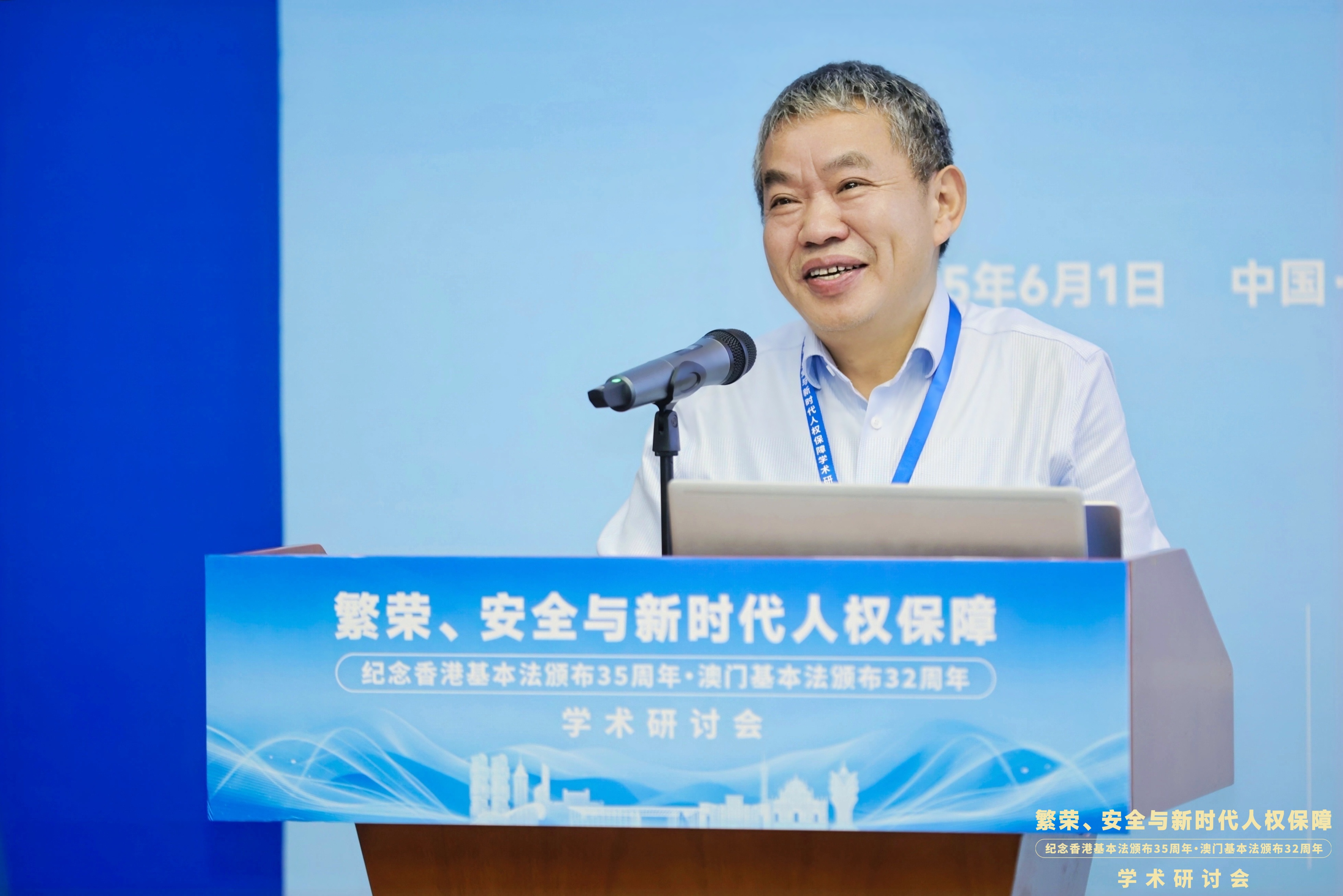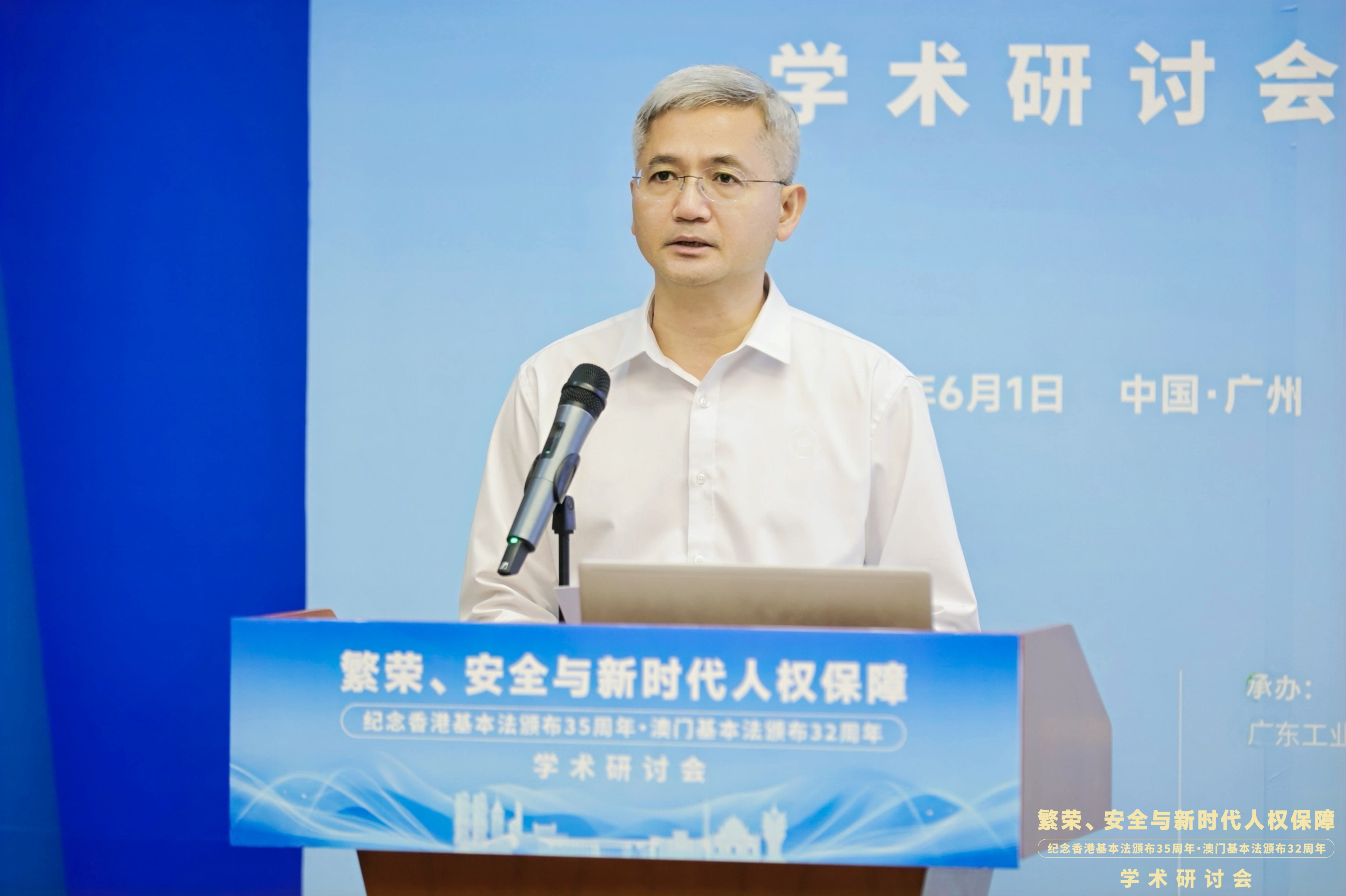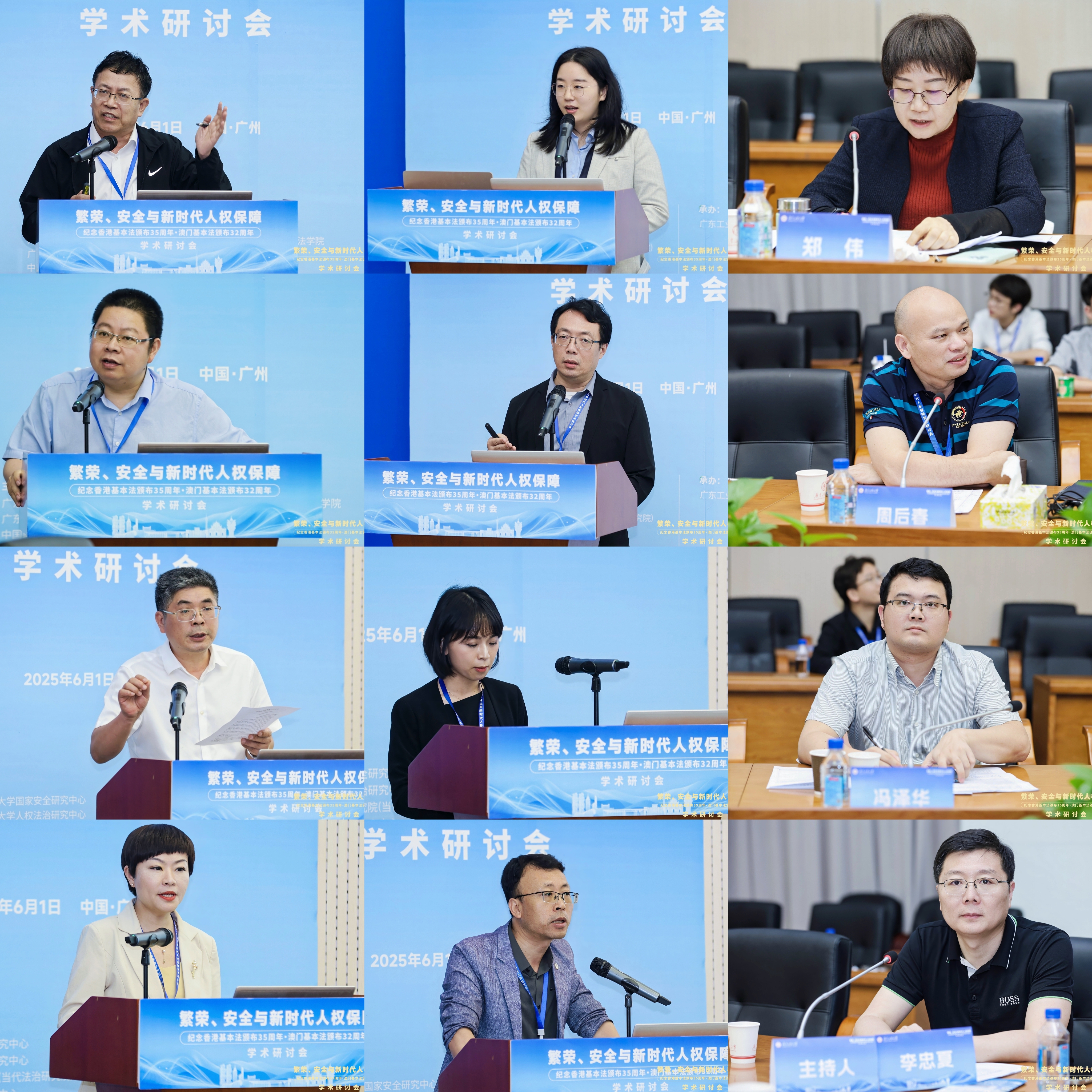 6月1日,“繁荣、安全与新时代人权保障——纪念香港基本法颁布35周年、澳门基本法颁布32周年学术研讨会”在广东广州隆重举行。此次研讨会由九游注册国家安全研究中心、九游注册人权法治研究中心、中国政法大学人权研究院(当代法治研究院)、中国政法大学港澳台教育中心以及澳门创新发展智库联合主办,由九游注册法学院承办。来自国防大学、中国人民大学、中国社会科学院、吉林大学、中南大学、北京理工大学、中央民族大学、中南财经政法大学、华东政法大学、西南政法大学、云南大学、昆明理工大学、贵州财经大学、香港大学、香港城市大学、澳门大学、澳门城市大学、华南理工大学、暨南大学、深圳大学、广东外语外贸大学、广东财经大学、广州大学、肇庆学院、濠江法律学社、香港政策研究所等内地及港澳知名高校、研究机构的超过80位专家学者齐聚一堂,围绕国家安全法治、人权保障实践、粤港澳大湾区区域协同治理等核心议题展开深入研讨。
