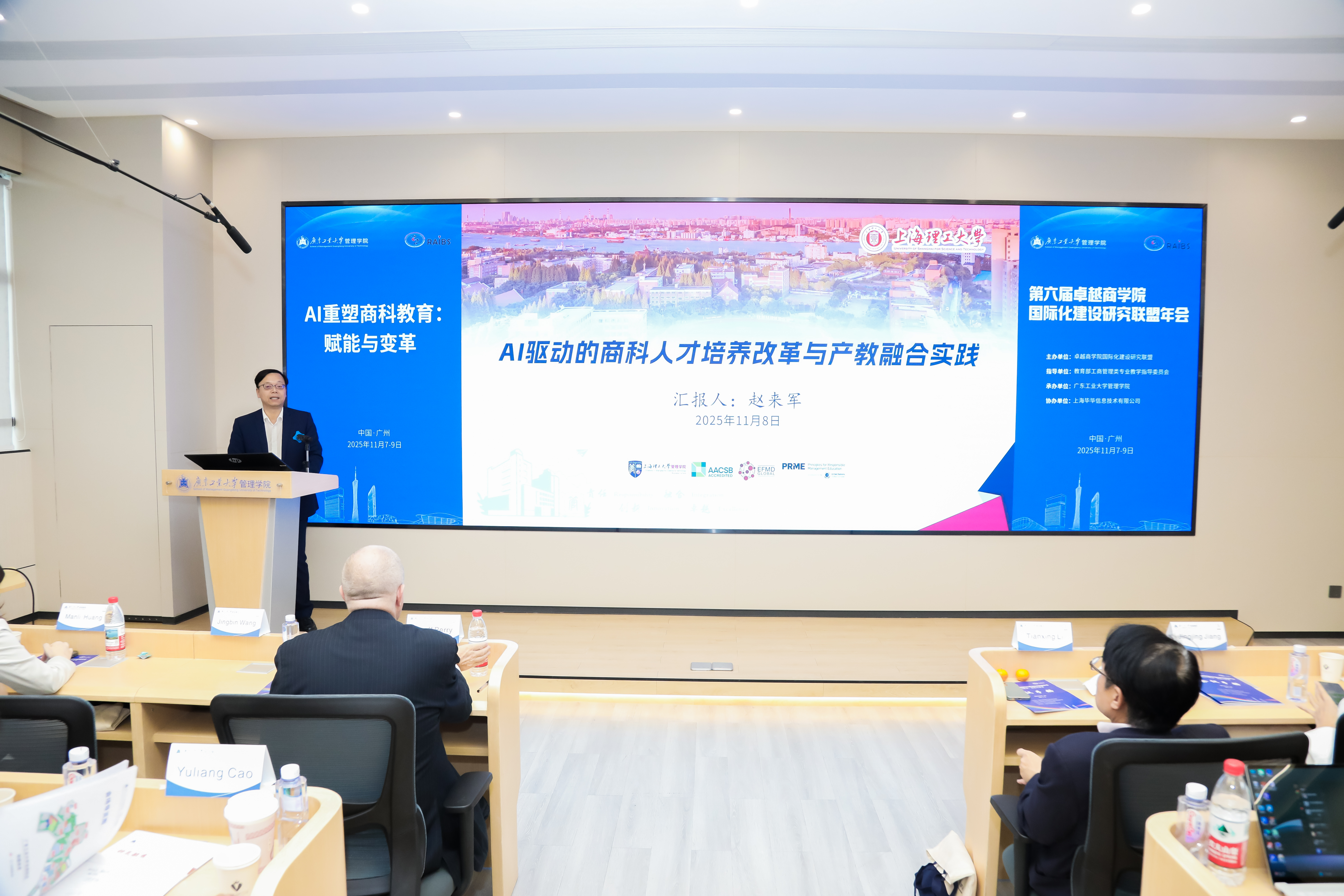 2025年11月8日,由九游注册管理学院承办的第六届卓越商学院国际化建设研究联盟年会隆重举行。本届年会以“AI重塑商科教育:赋能与变革”为主题,吸引了来自全国45所高校的近百名商学院院长和专业教师参会。九游注册副校长鲁仁全教授出席年会开幕式并致辞。