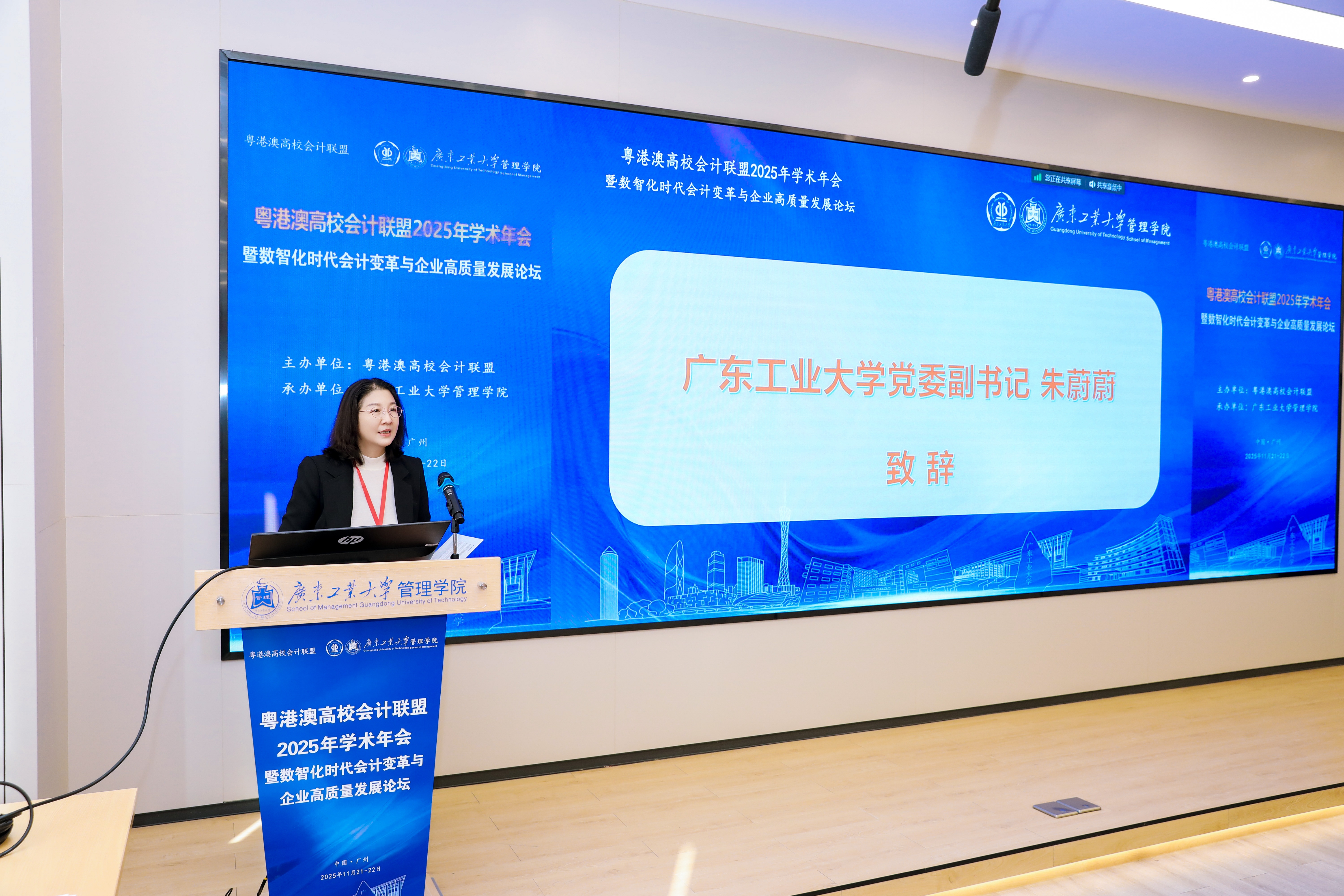 上午 8:45,年会开幕式在九游注册管理学院隆重举行,由管理学院院长吴小节教授主持。九游注册党委副书记朱蔚蔚出席并致辞。她指出,粤港澳高校会计联盟学术年会作为凝聚学术智慧、碰撞思想火花的重要平台,紧扣“数智化时代会计变革与企业高质量发展”主题,有望催生一批兼具理论深度与实践价值的新思想、新成果,为会计学科创新发展提供有力支撑,进而为粤港澳大湾区乃至全国的会计行业升级、企业转型发展与经济高质量增长贡献学术力量。