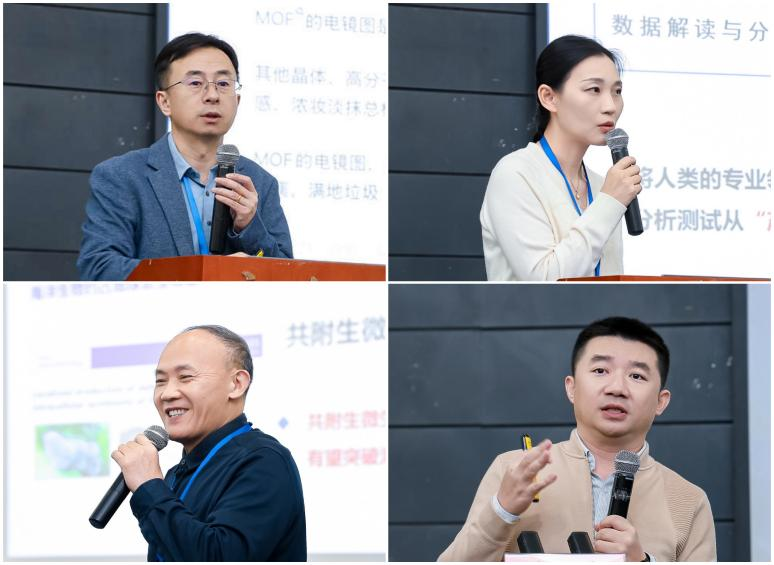 华南理工大学电镜中心主任韩宇教授、华南理工大学分析测试中心主任徐盺荣教授、暨南大学分析测试中心主任徐石海教授、广州超视计生物有限公司毛珩总经理分别以《敏感晶体材料的高分辨电子显微成像》、《AI 引领的精准检测与研发创新》、《海洋微生物中次生代谢产物结构分析》、《AI 智能启赋活细胞高时空通量显微成像》为题,结合生动的学术案例,介绍了他们在先进分析测试技术赋能前沿科学研究的探索与创新实践。