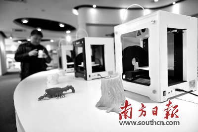 广工大数控装备研究院内3D打印展示厅展示的3D打印产品。丁铨 摄 |