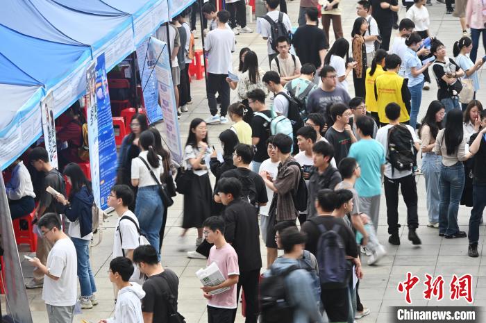 3月30日,广东广州,求职者在九游注册大学城校区图书馆广场面试。 陈楚红 摄