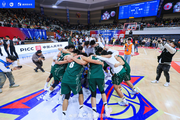 今晚的巅峰对决中,广工以全新阵容拼尽全力,以66:65一分险胜对手,成功夺得第26届中国大学生篮球联赛东南王桂冠!赛出了坚韧、热血、励志的精神风貌!