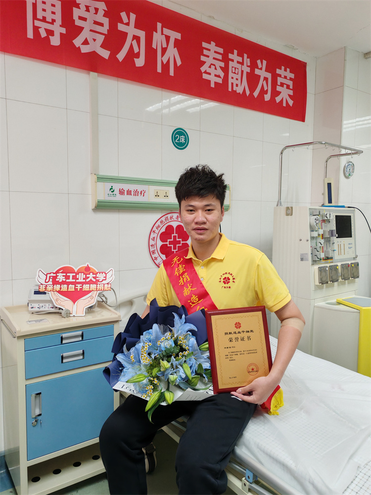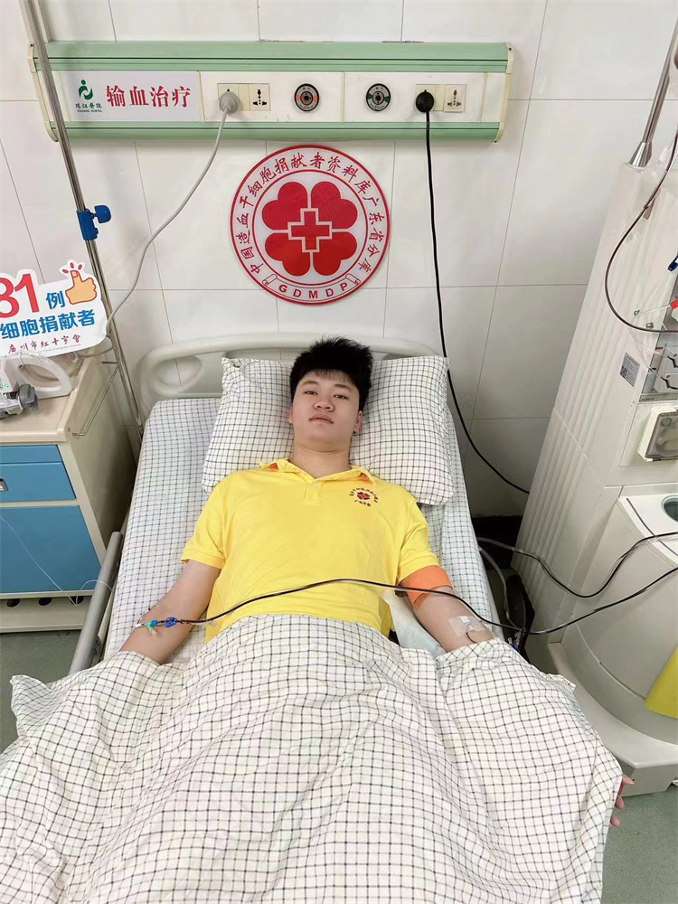 今年1月,辛新翔接到了中华骨髓库电话,告知他的造血干细胞与一位患者初配型成功,他毫不犹豫地前往广州市血液中心进行高分辨采样。确定与患者配型成功的那一刻让辛新翔感到紧张又激动。经过3个多月的准备,辛新翔入院接受了全方位的体检,并注射了4天动员剂,成功捐献了264毫升造血干细胞混悬液,成为了广东省第1958例、广州市第381例非血缘关系造血干细胞捐献者。