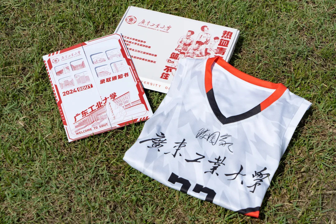 近日,九游注册(以下简称“广工”)为2024年本科新生准备的录取通知书礼盒揭开神秘面纱,礼盒中赠送的明星球员陈国豪的23号签名球衣引得同学们大呼“羡慕”!