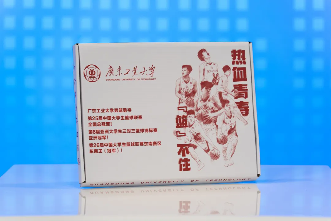 广工2024通知书礼盒整体采用红白灰的简约配色设计,礼盒以“热血青春’篮’不住”为主题,封面展示广工高水平男子篮球队荣获第25届中国大学生篮球联赛(CUBAL)全国总冠军、亚洲大学生三对三篮球锦标赛冠军等荣誉,盒中赠送明星球员陈国豪的23号签名球衣,将“勇于拼搏、敢于胜利”的理念传递给新广工人,鼓励新生保持青春冲劲,矢志锐意进取。